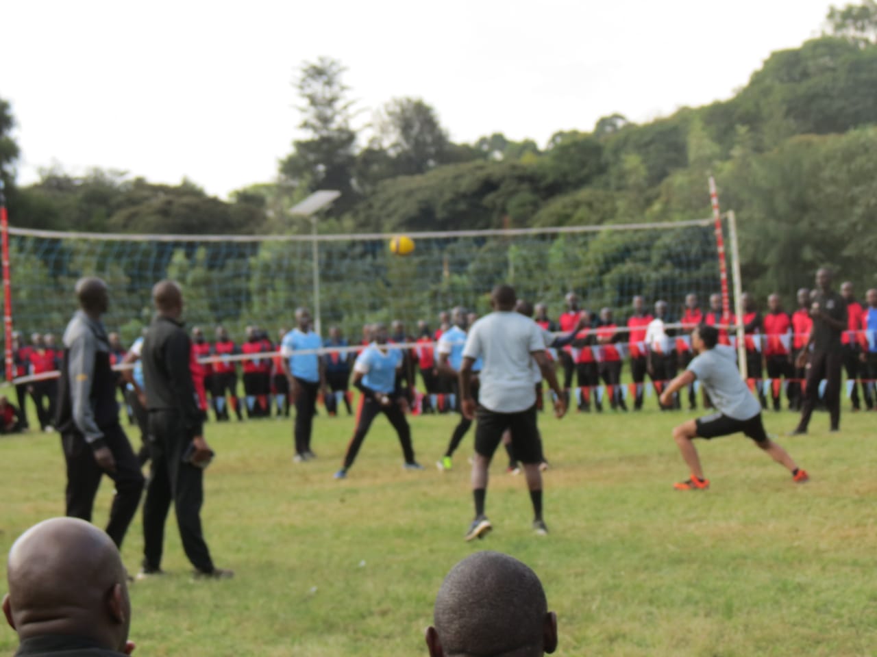 On Wednesday, 27 August 2025, the Joint Command and Staff College (JCSC) welcomed the Moi Air Base (MAB) volleyball team for a friendly match at the JCSC grounds. The event was graced by the presence of Colonel P K Karigih (Colonel Coordination), who was accompanied by Colonel S W Buuri, Commander Helicopter Command, Heads of Departments and Directing Staff.