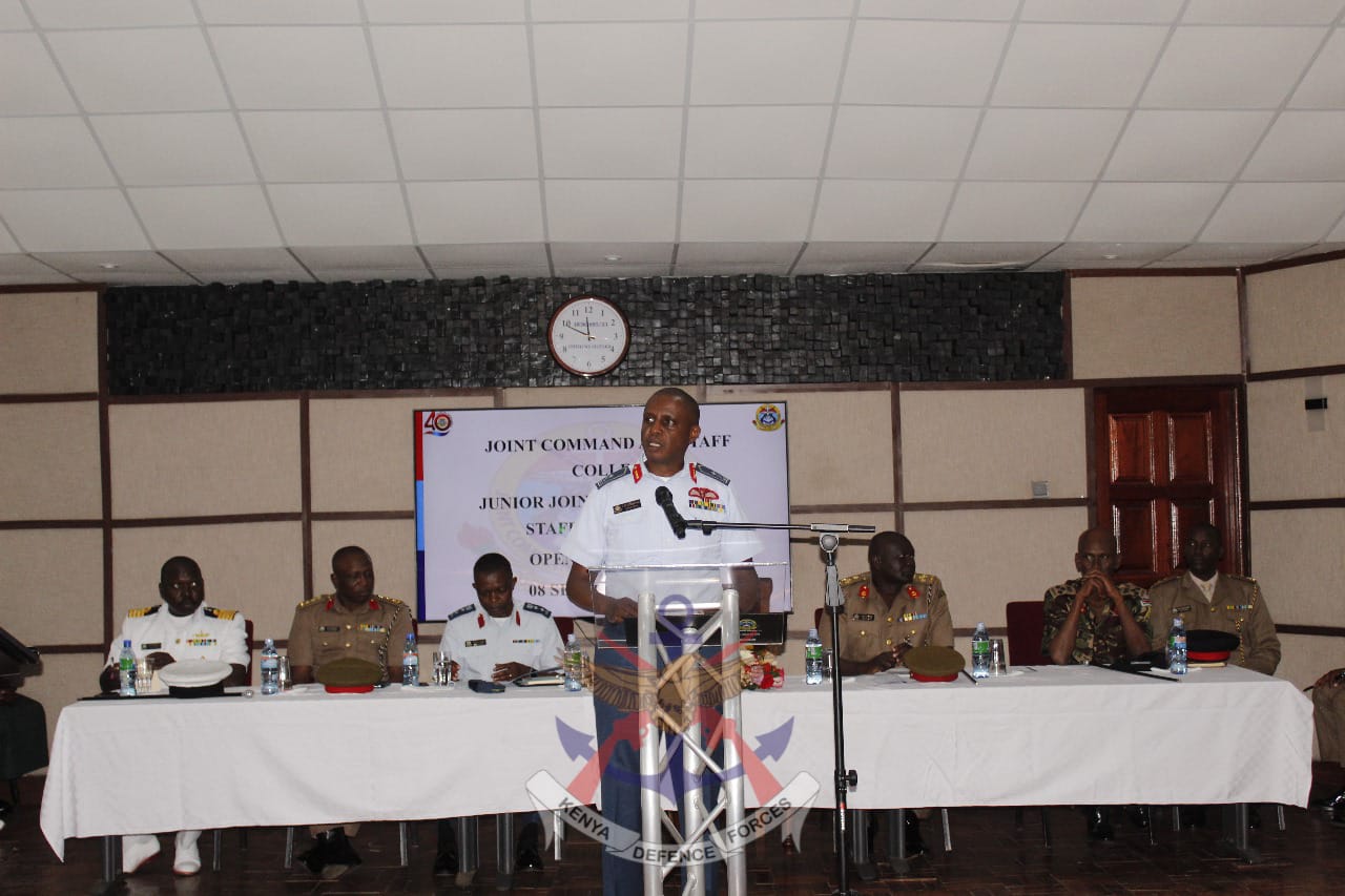 The Junior Joint Command and Staff Course, JJCSC 102/25, was officially opened at the Joint Command and Staff College (JCSC) at the Lang’ata Garrison. The opening ceremony was graced by the Commandant, Major General E M Kinuthia, who was accompanied by the Deputy Commandant and Chief Instructor, Brigadier D K Chesire, along with the Heads of Departments.