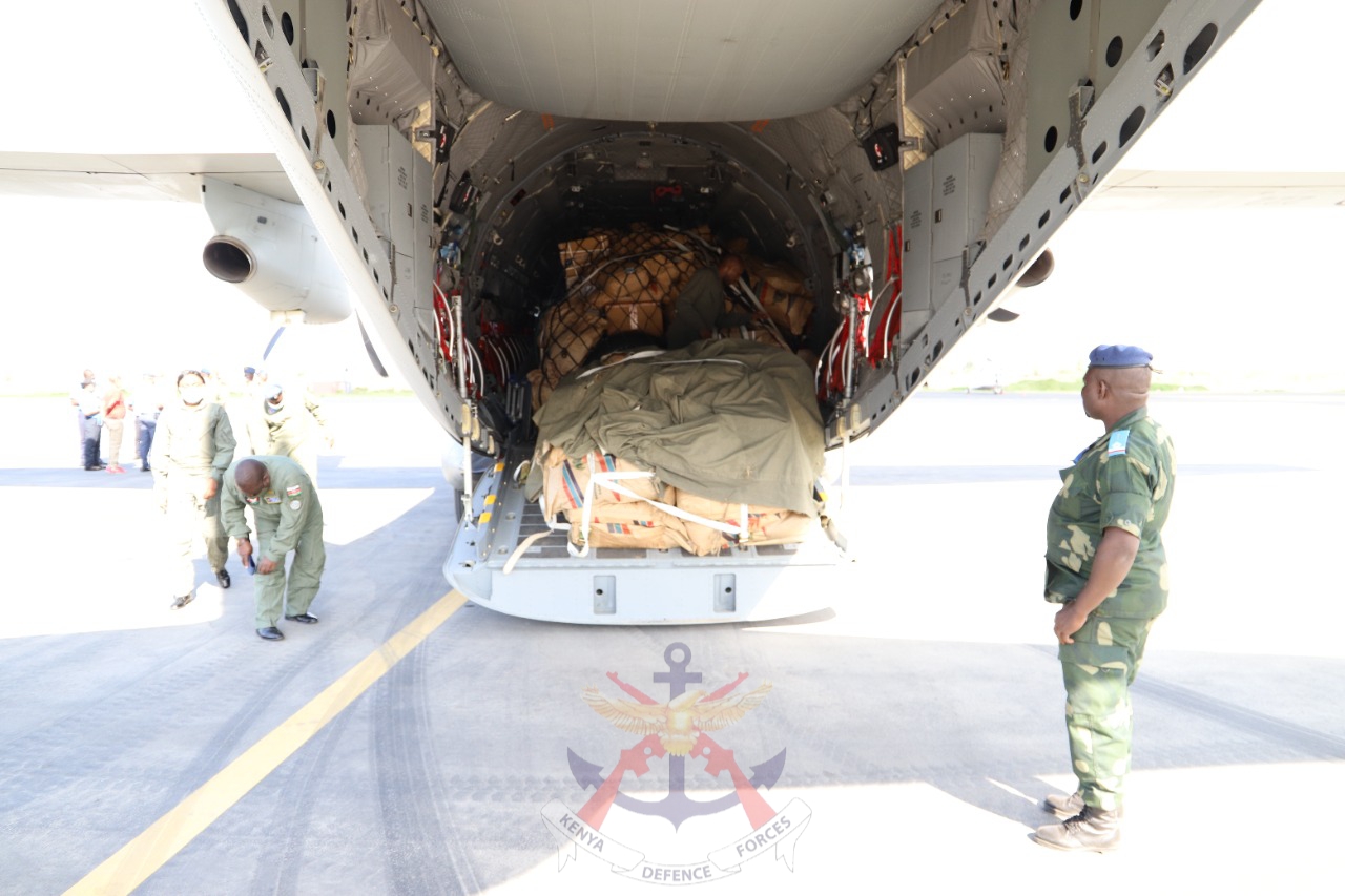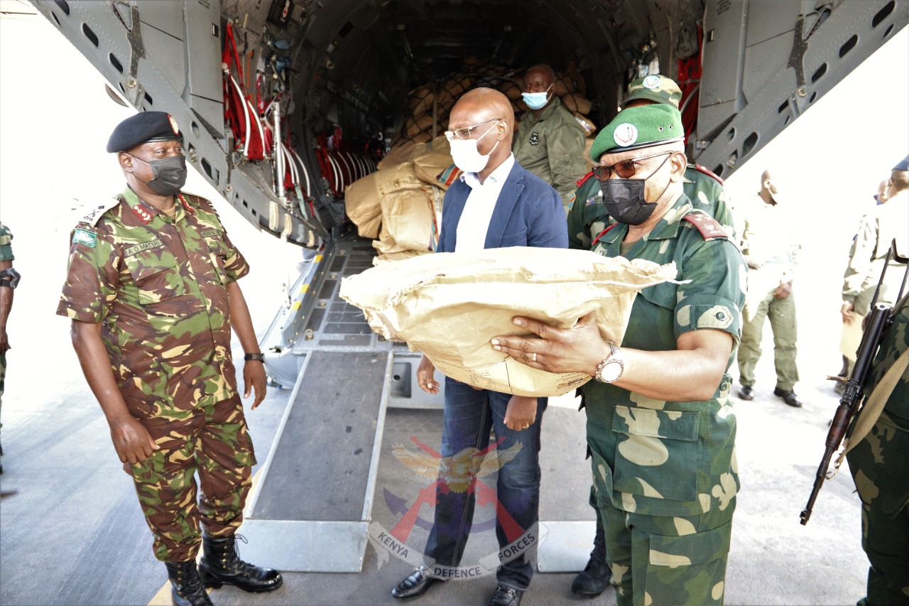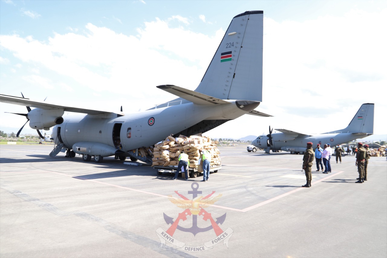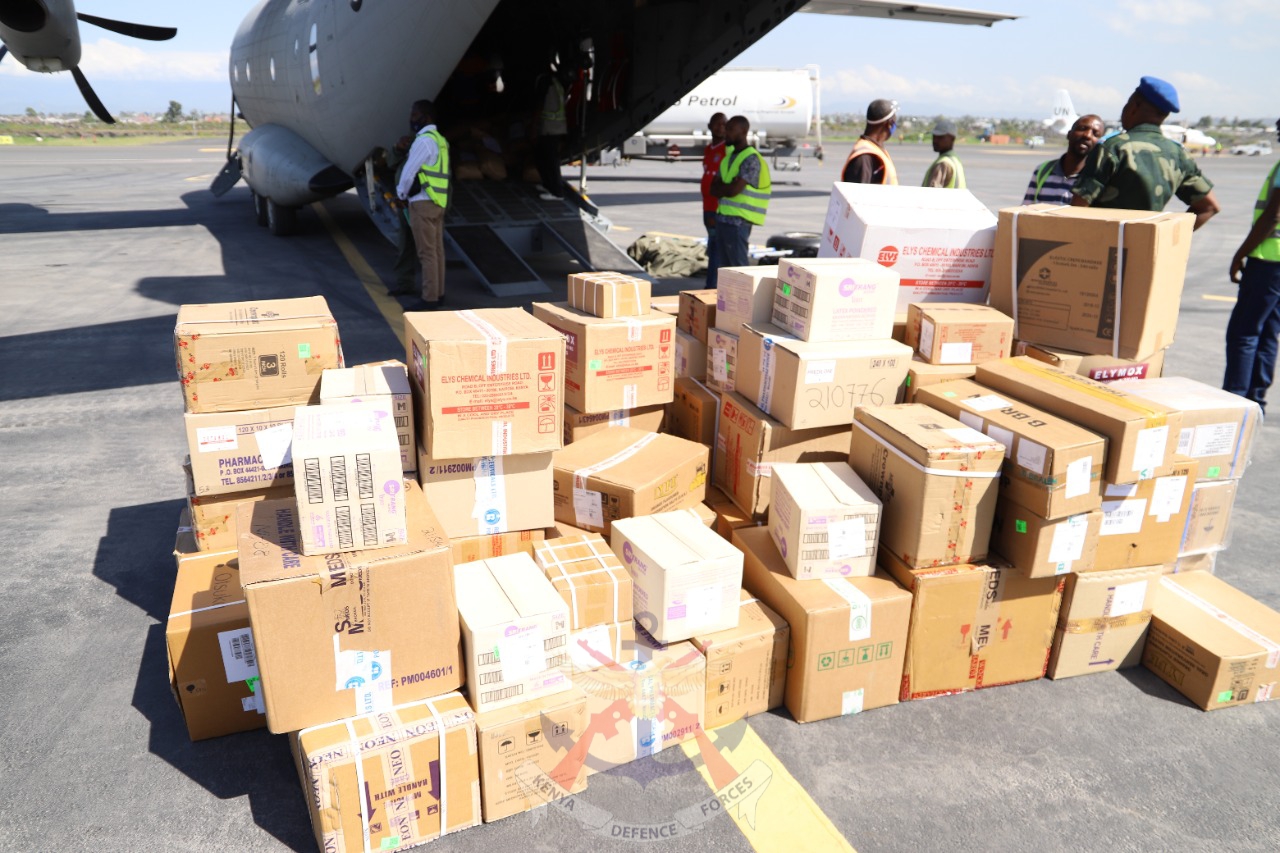 In honouring Kenya’s pledge to offer regional support when need arises, today the Kenya Defence Forces (KDF) dispatched several shuttles of assorted humanitarian aid to affected families in Goma Province in the Democratic Republic of Congo (DRC) in a bid to alleviate the humanitarian challenges as a result of displacement due to the volcanic eruption last month.