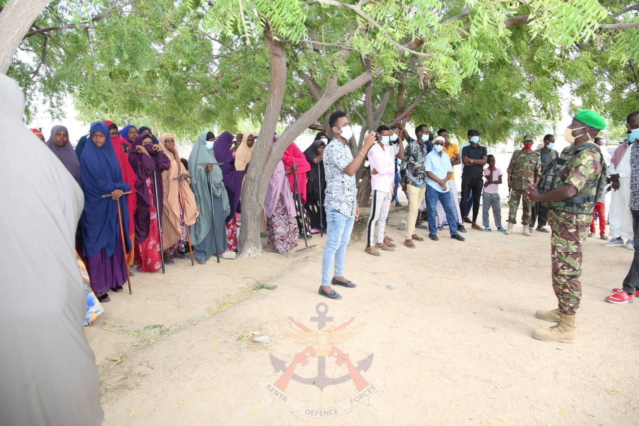 The KDF troops in conjunction with ECOLOG Company also donated cleaning gear equipment to various women groups in Dhobley town that included helmets, masks, rakes and dustbins among others.