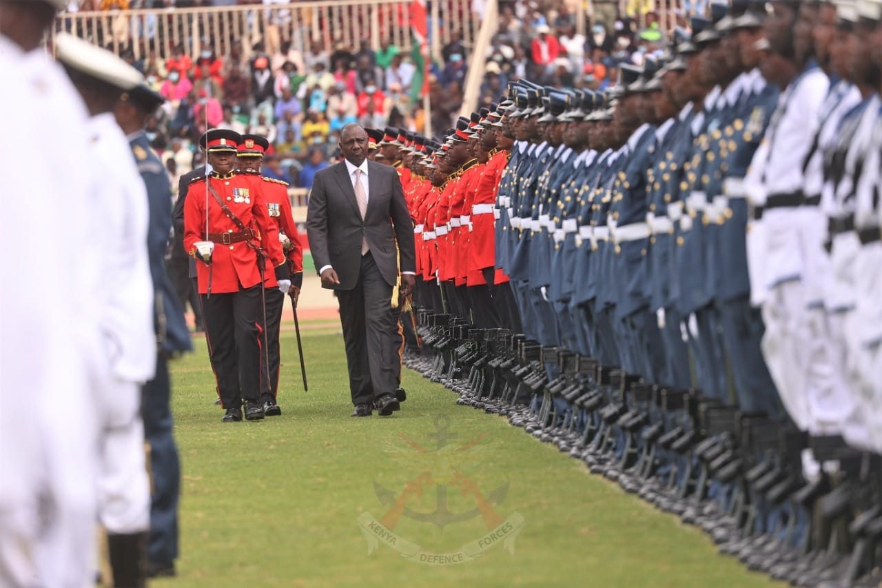The ceremony commenced after the President inspected a guard of honour mounted by the three services of the Kenya Defence Forces (KDF) after which the President presented 23 MIB the Presidential and Regimental Colours making the unit fully operational.