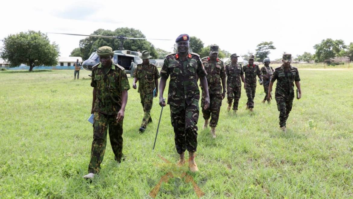 The 8th Brigade Commander, Brigadier David Chesire, accompanied by Artillery Brigade Commander, Brigadier M. Mwenga, and Operation Amani Boni (OAB) Commander Colonel Joel Tanui, visited the troops deployed under OAB in Witu, Mkunumbi, and the General Service Unit (GSU) in Pandanguo, Lamu County. The visit was to engage troops operating in the Boni forest and reinforce the role of multi-agency security set-up in securing the region.