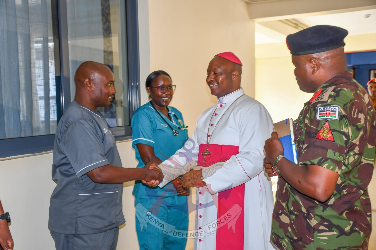 He was received by the Kahawa Garrison Camp Commandant, Colonel Valentine Kilungya, before proceeding to the Nairobi Regional Hospital (NRH) within the garrison, where activities focused on prayer and solidarity with the sick.