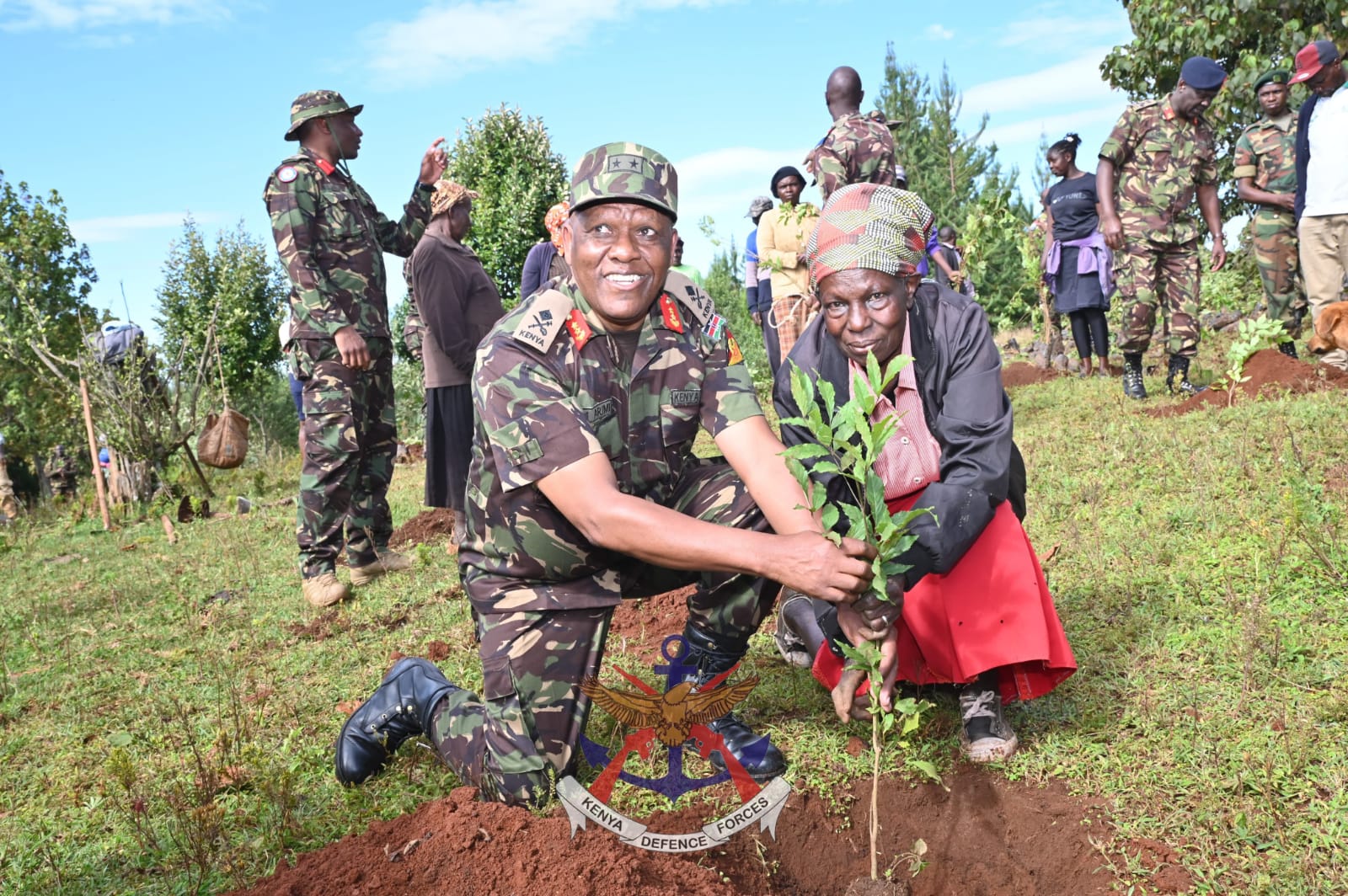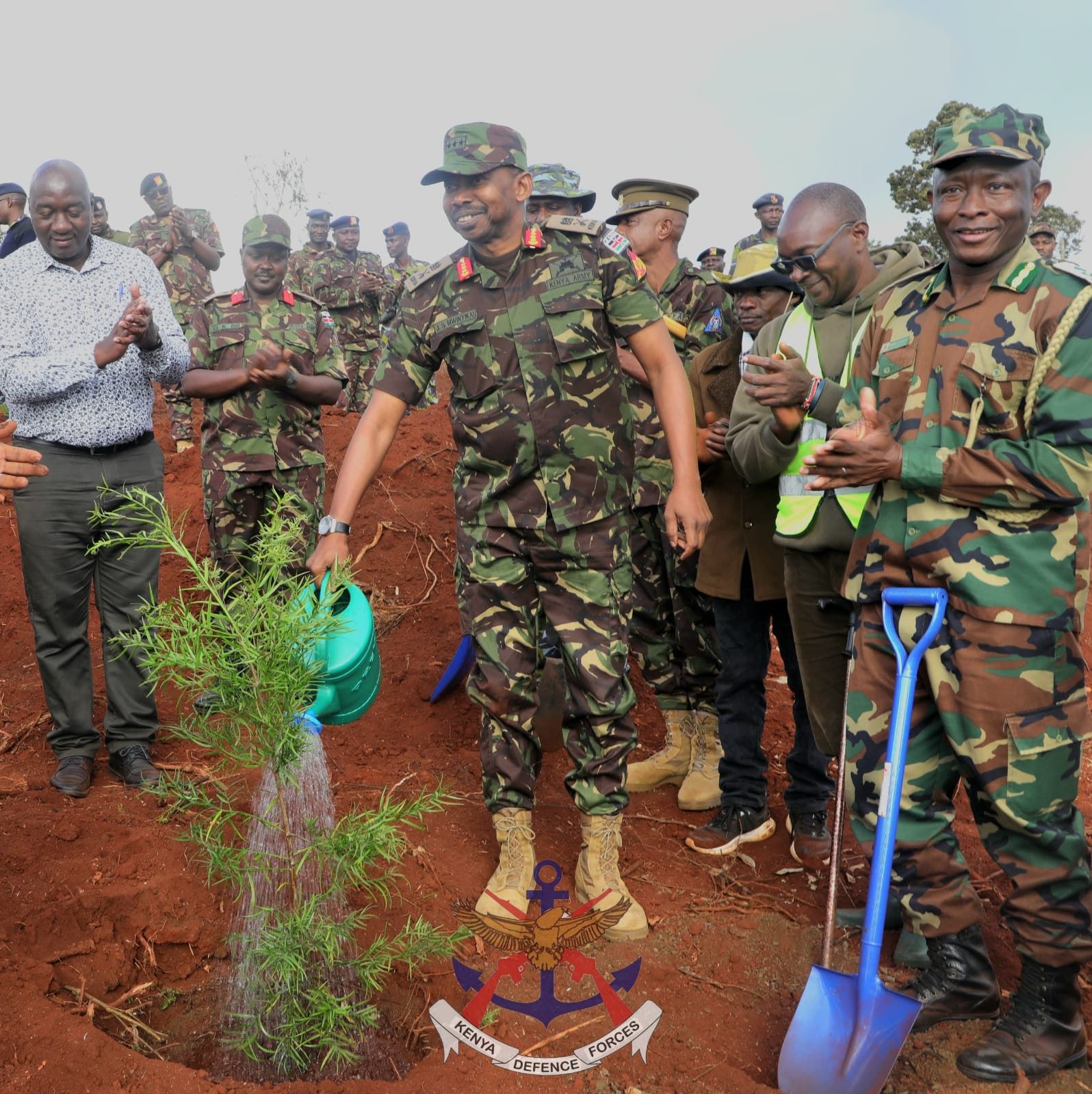 Meanwhile, at the Kenya Military Academy (KMA), the Commandant, Major General Joel Muriungi M’Arimi, led officers, staff, and cadets in a large-scale tree growing exercise at Mlima Githori, Timboroa Forest, where 10,000 assorted indigenous trees were planted.