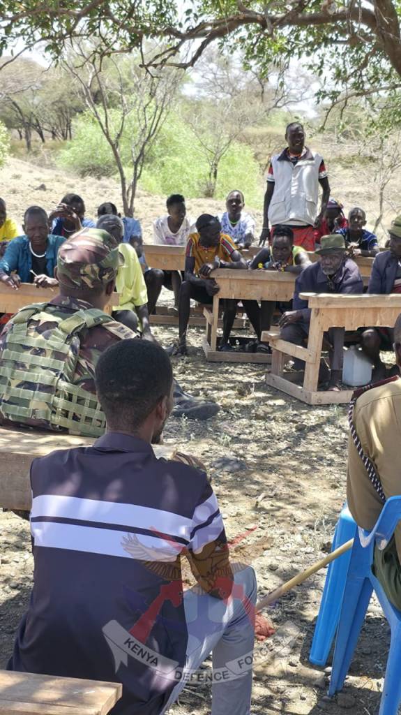 On 03 February 2026, KDF troops operating under Operation Maliza Uhalifu (OMU), participated in a Key Leadership Engagement (KLE) meeting held at Chesitet Primary School. The meeting formed part of ongoing efforts to foster collaboration between security agencies, government administrators, and the local community in addressing prevailing security and socio-economic challenges within the area.