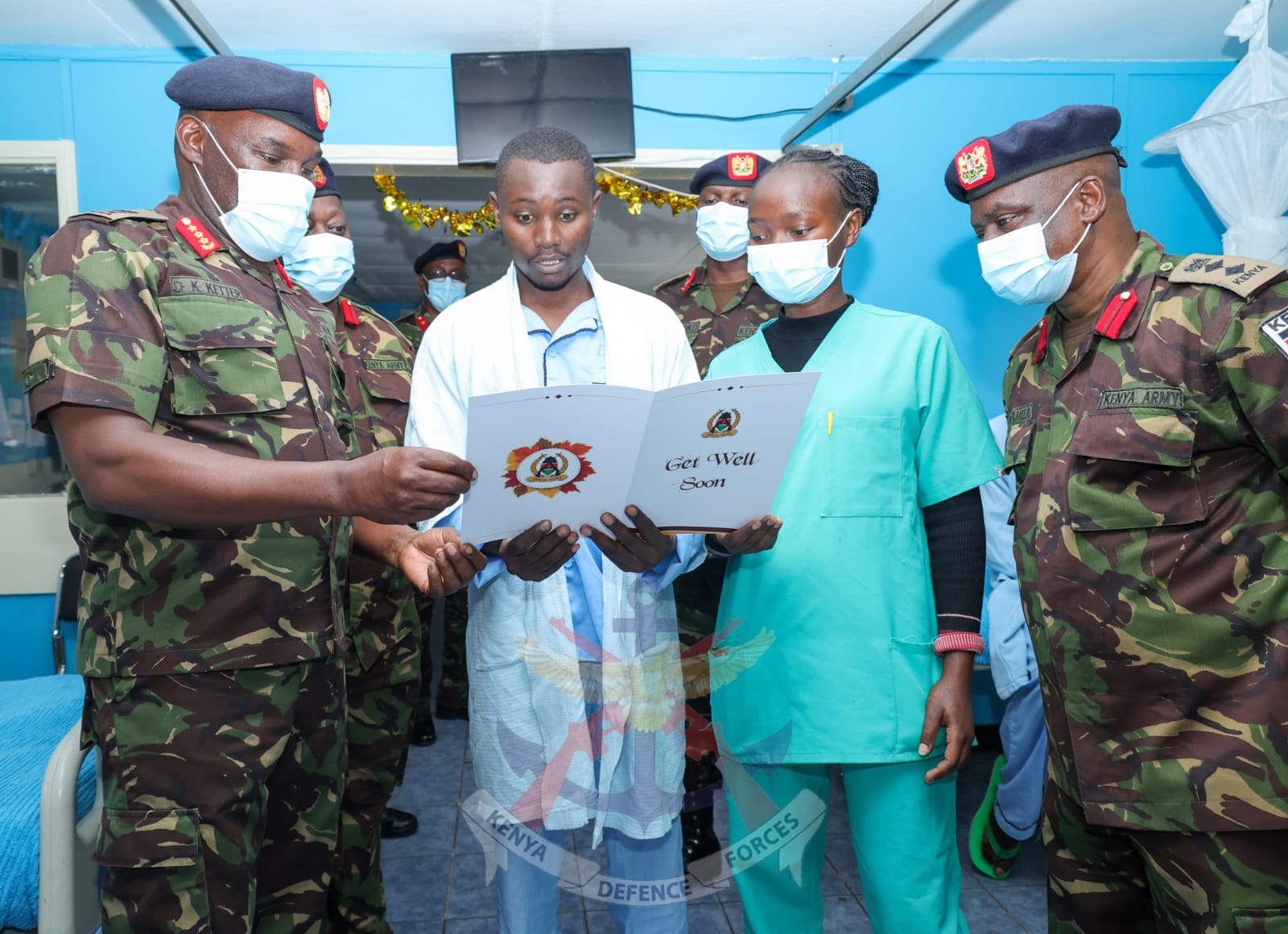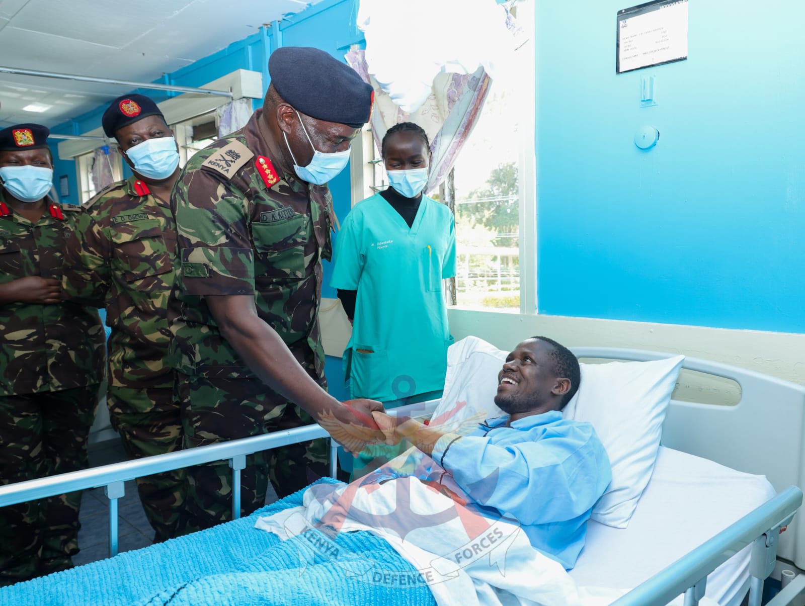 Commander Kenya Army, Lieutenant General David Ketter, on Tuesday, 23 visited patients admitted at the Defence Forces Memorial Hospital as part of continuous command engagement, leadership engagement, and troop welfare initiatives in line with his philosophy of effective leadership that begins with care for the soldier, “A Soldier-Centric Approach to Enhance Mission Readiness.