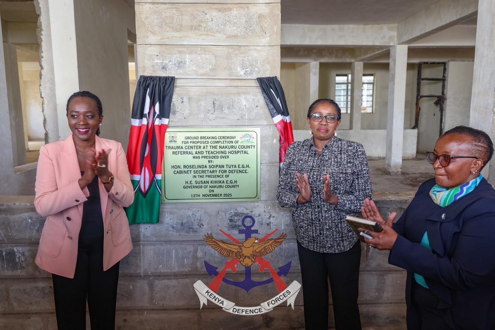 Cabinet Secretary for Defence, Hon. Soipan Tuya, alongside Nakuru Governor, Hon. Susan Kihika, today presided over the ground-breaking ceremony for the Afraha Stadium Phase II and the Nakuru County Teaching and Referral Hospital (NCTRH) Trauma Centre in Nakuru County. The event marked the commencement of two transformative projects set to redefine the county’s healthcare and sports landscapes.