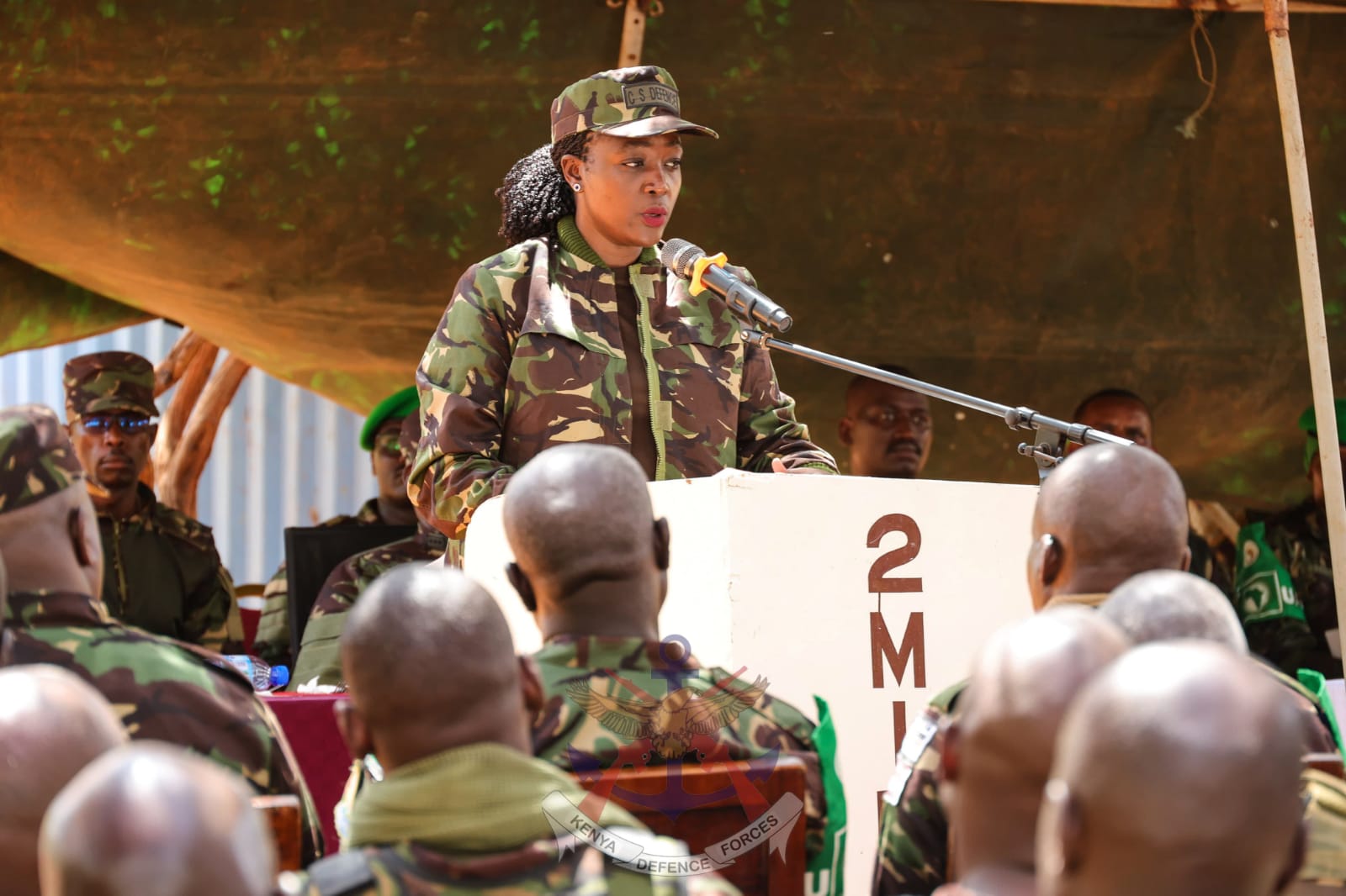 Addressing the troops, CS Tuya commended their commitment and professionalism, describing their service as a high expression of patriotism that protects Kenya and the wider region by disrupting Al-Shabaab networks.
