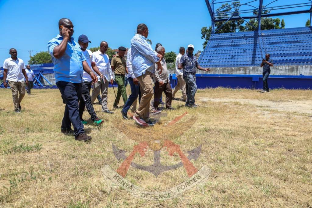Dr. Mariru was accompanied by the Chief of Special Projects at Defence Headquarters, Brigadier Titus Sokobe. Also present were Sports Kenya Director General Mr. Timothy Kilimo, Mombasa County Executive Committee Member for Transport, Infrastructure and Governance Mr. Daniel Manyala, CEC Member for Public Service Administration, Youth, Gender and Sports Mr. Jonathan Wepukhulu, and the County Chief Officer for Transport and Infrastructure, Eng. Ali Abdulrahman.