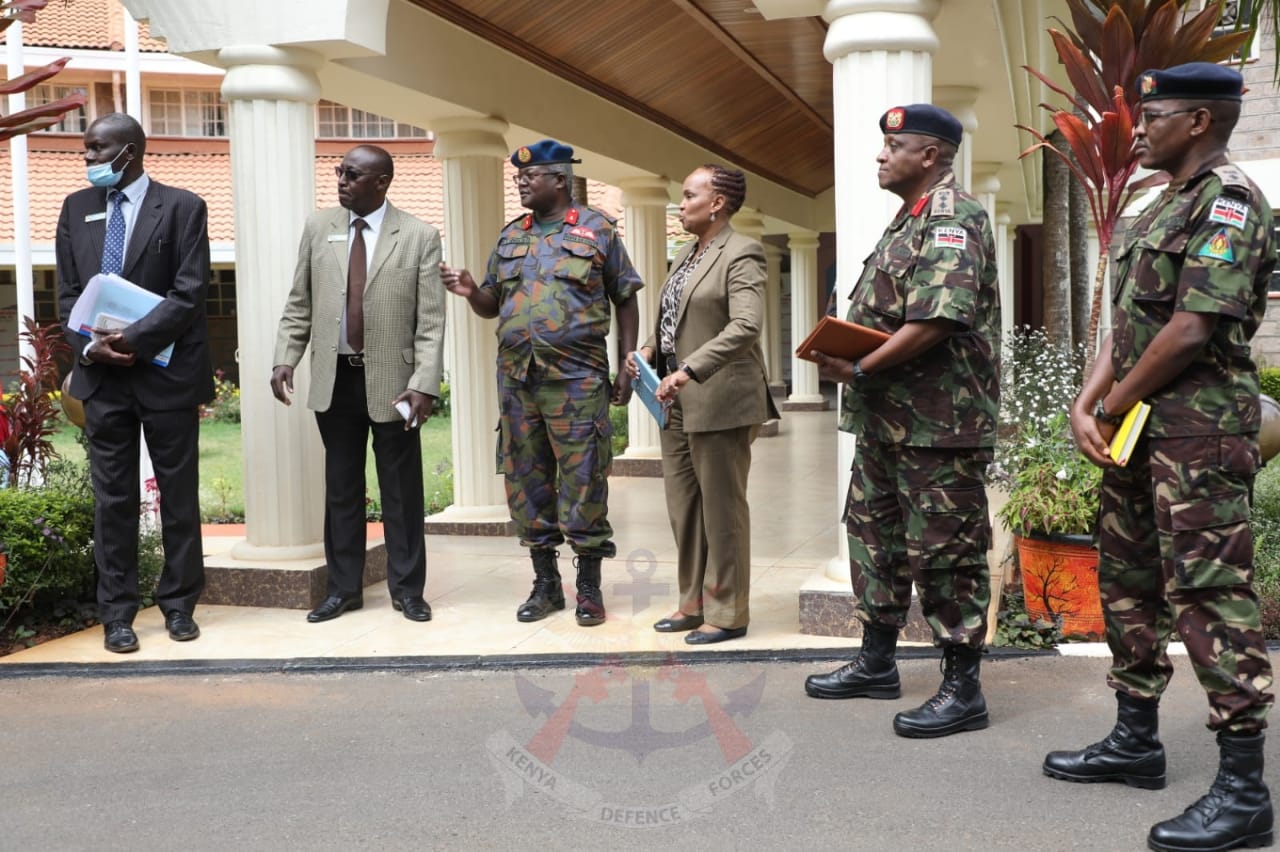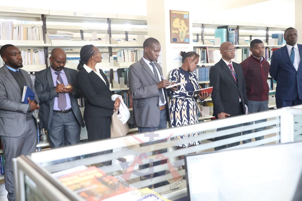 The delegation consisting of Deputy Director in the department of Prosecution Training Institute (PTI) Mr. Alloys Kemo, were ushered into the International Peace Support Training Centre (IPSTC) by the Vice Chancellor, National Defence University-Kenya Lt General Jonah Mwangi for a brief of the daily activities and governance prospects of the institution before proceeding to the adjacent National Defence College.