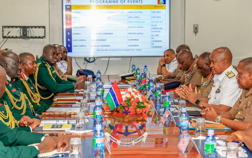 The Chief of Defence Staff (CDS) of the Gambia, Lieutenant General Mamat O.A. Cham, on Tuesday, 7 October 2025, paid a courtesy call on the Chief of the Defence Forces (CDF) of Kenya, General Charles Kahariri, at the Defence Headquarters (DHQ), Nairobi.