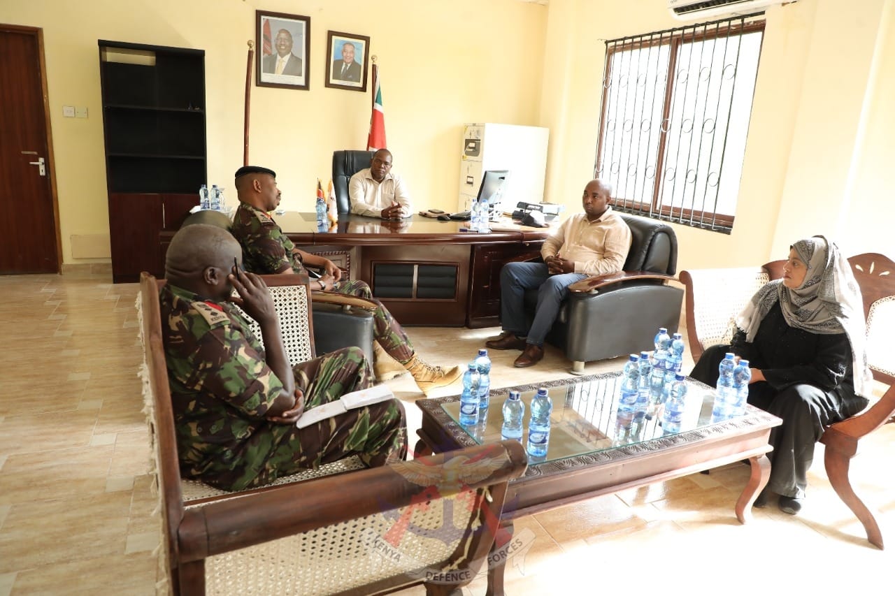 General Officer Commanding Eastern Command, Major General Juma Mwinyikai alongside OAB Commander Col. Joel Tanui and Deputy Commander 6 Brigade Col. Emmanuel Ptiony today 25 January 2023 paid a visit to the Deputy Governor Lamu County Hon Raphael Munyua.