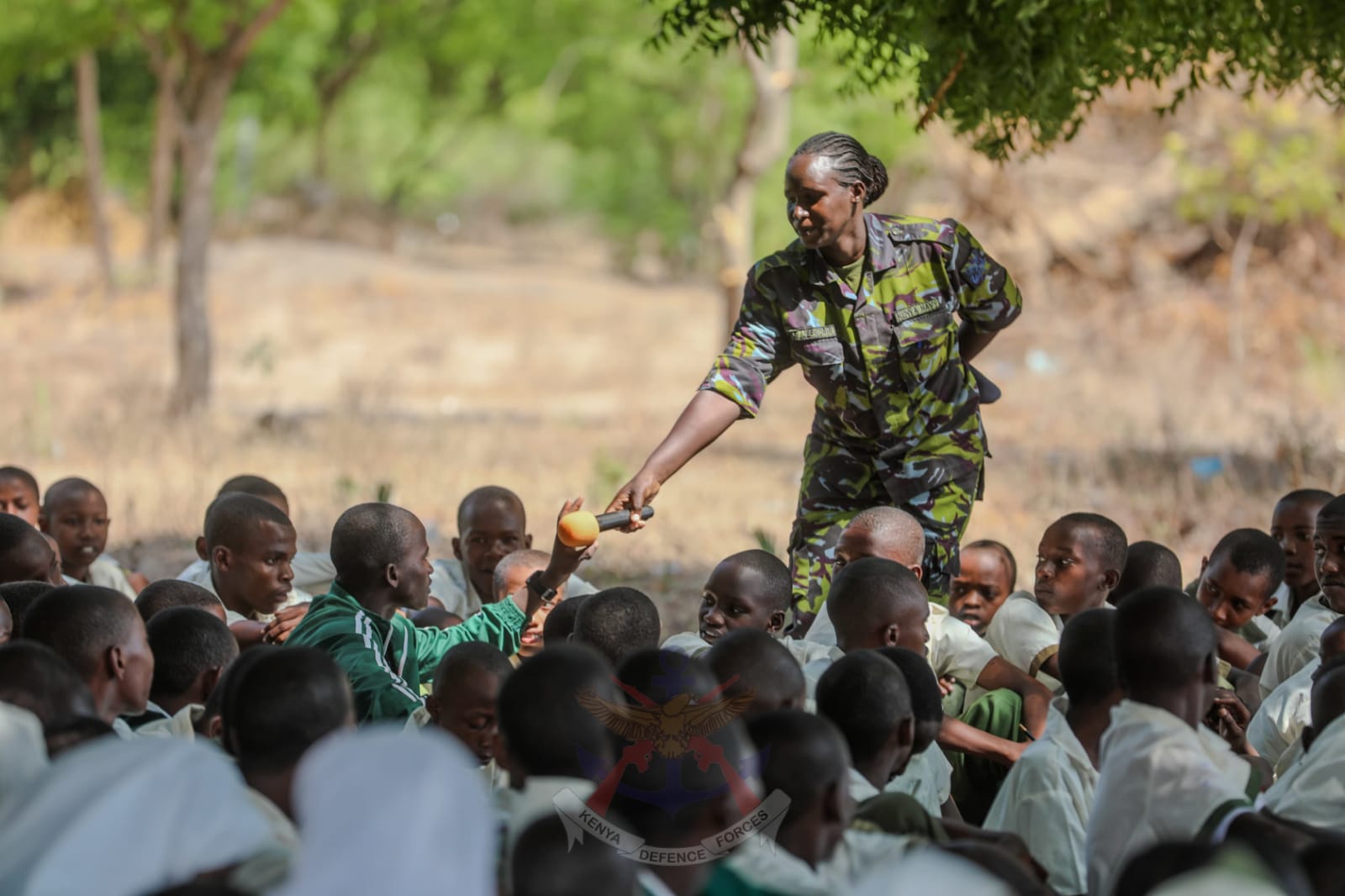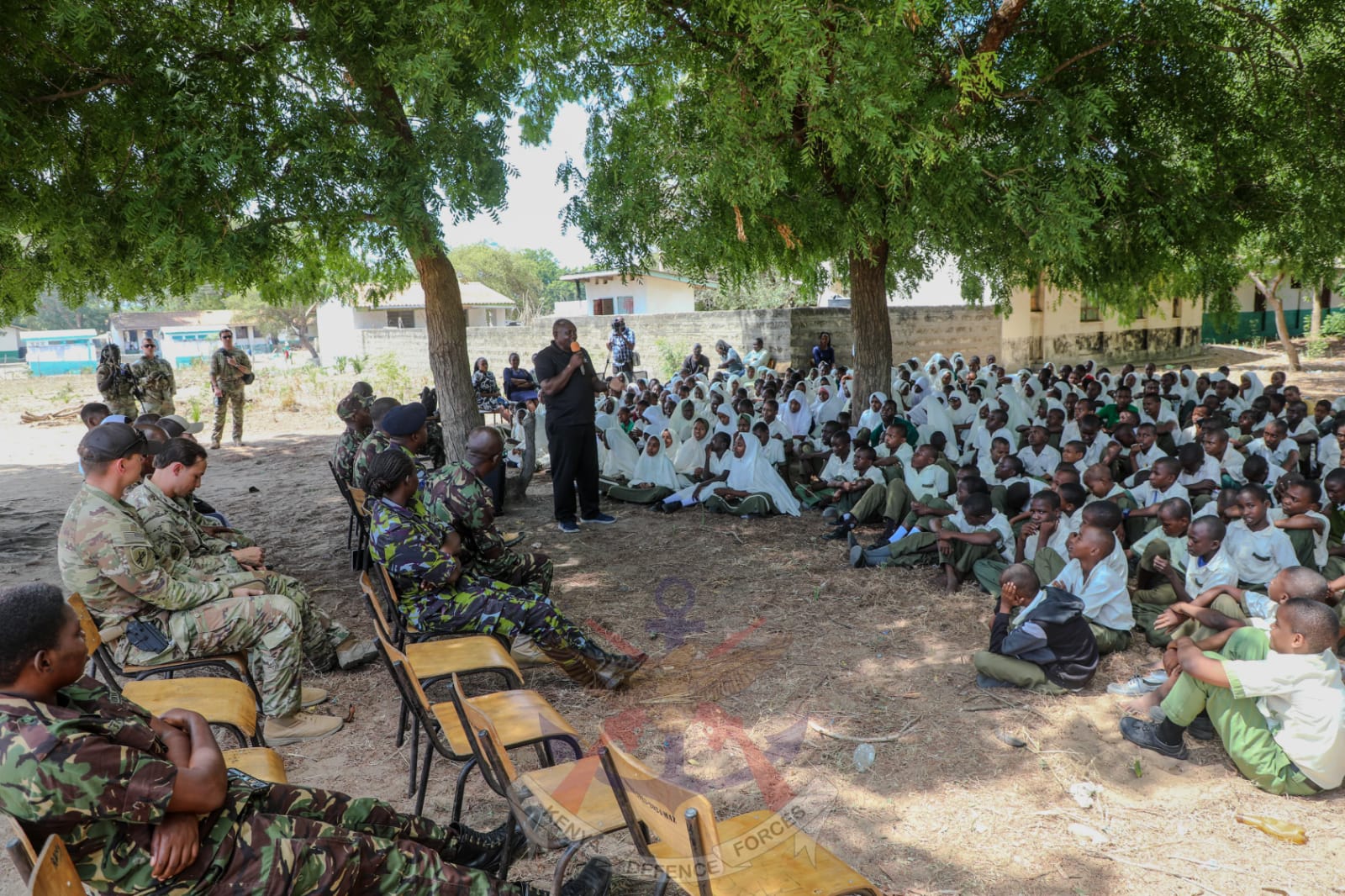 Kenya Defence Forces troops operating under Operation Amani Boni (OAB) conducted a Civil–Military Cooperation outreach at Mokowe Arid Mixed Day and Boarding School in Lamu County. The engagement also brought together Kenya Navy personnel from Manda Base and United States Military Civil Affairs officers from Camp Simba, alongside representatives from the Kenya Red Cross, Lamu Women for Peace and officials from the County Government of Lamu.