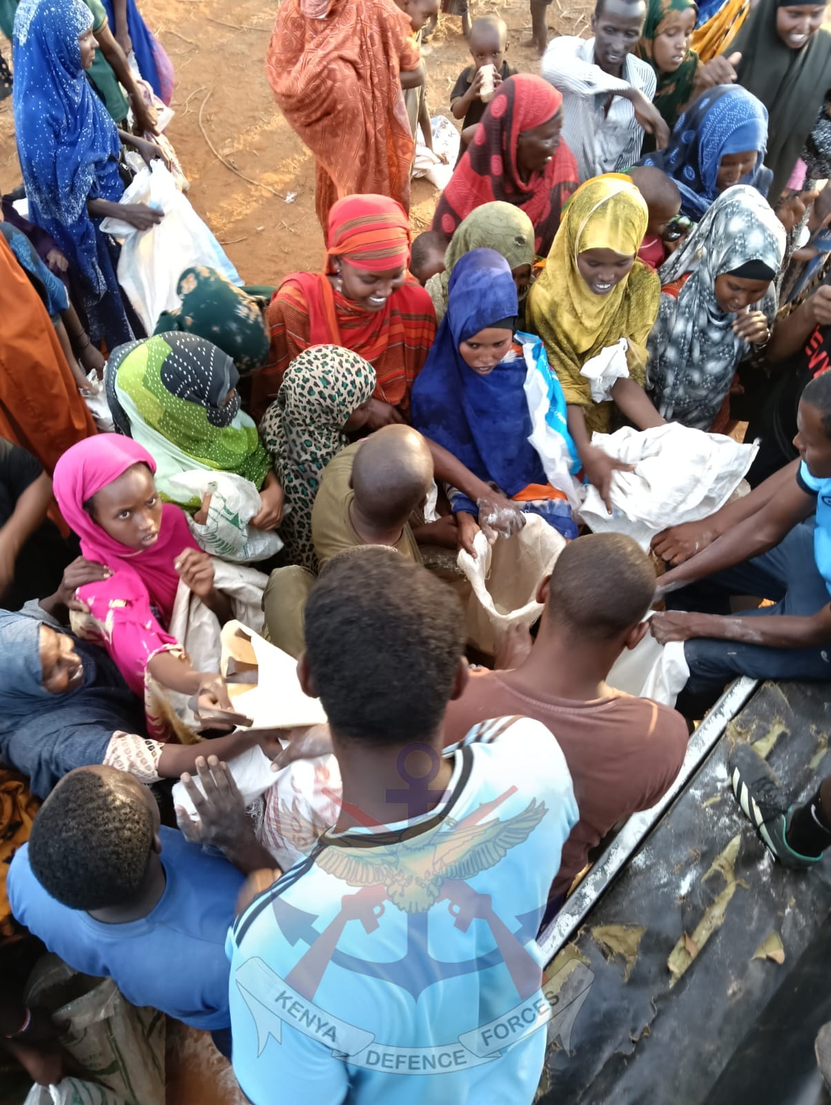 Kenya Defence Forces (KDF) troops based in Elwak shared food items with local community at Iresuki town, Mandera County and also issued Football Kit to Iresuki youth football team as part of CIMIC initiative geared to strengthening civil-military cooperation and enhancing trust between security forces and the community.
