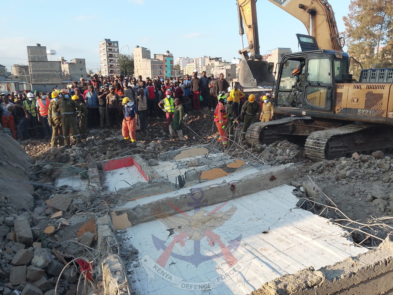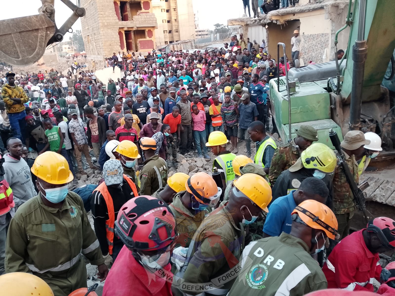 Working alongside officers from the National Police Service (National Disaster Management Unit), the Nairobi City County Government Urban Search and Rescue (USAR) team and firefighters, as well as the Kenya Red Cross Society, the DRB helped coordinate rescue operations at the scene.