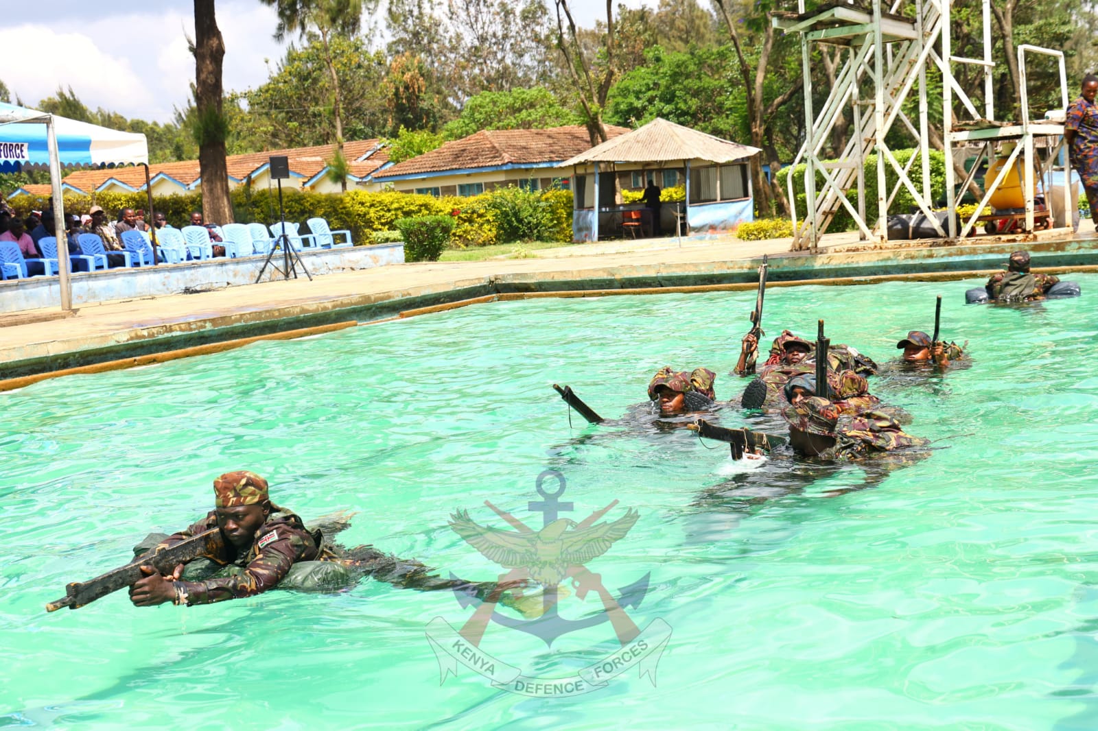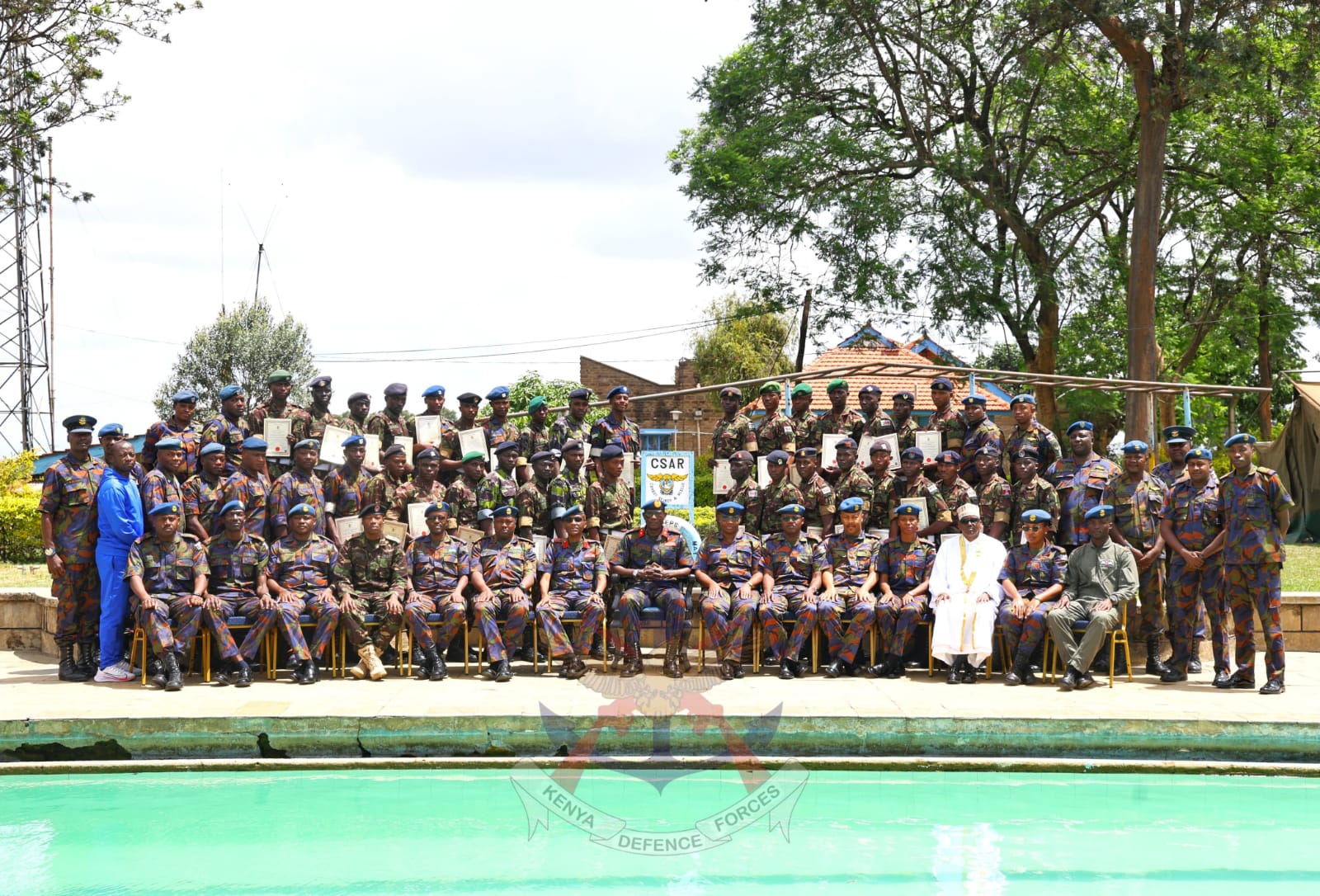 The Base Commander, Moi Air Base (MAB), Brigadier Herbert Wafula presided over the graduation of a new cohort of Combat Search and Rescue (CSAR) trainees, marking the completion of a rigorous 15-week course aimed at enhancing the KDF’s operational readiness and rescue capabilities at Moi Air Base swimming pool ground.