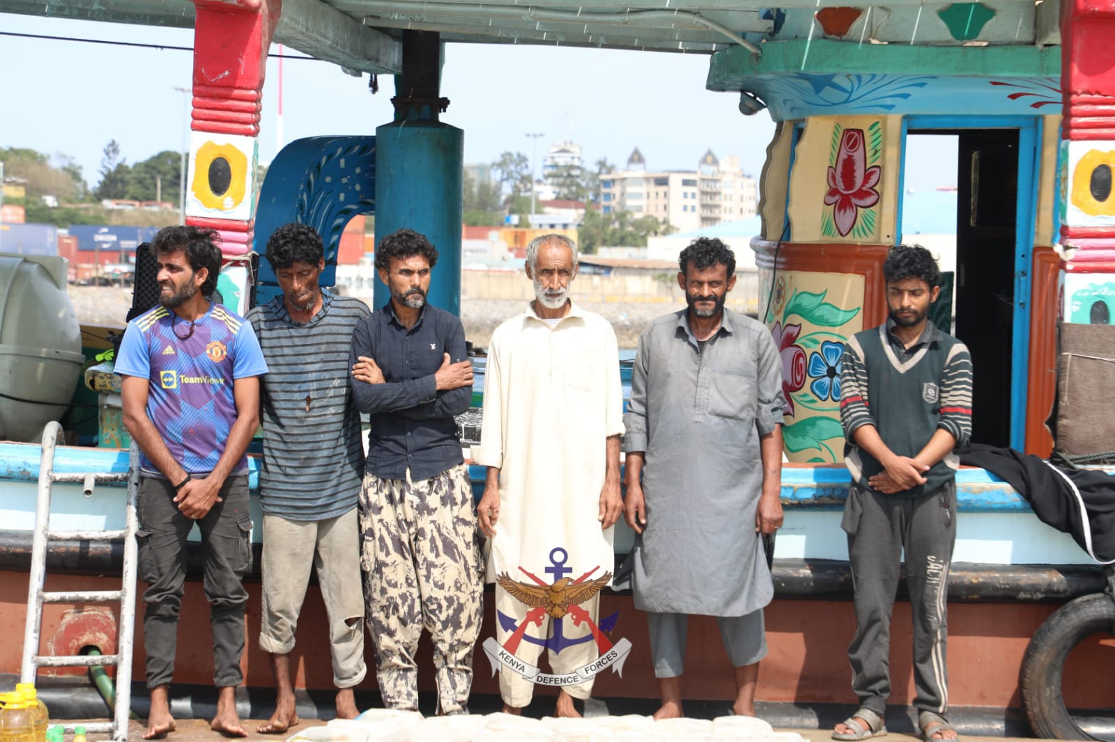 KNS SHUPAVU escorted the intercepted vessel, along with its crew to Mombasa port where it was handed over to the multi-agency team for further investigations and prosecution of the six suspects. Court warrants for further inspection and testing have been obtained.