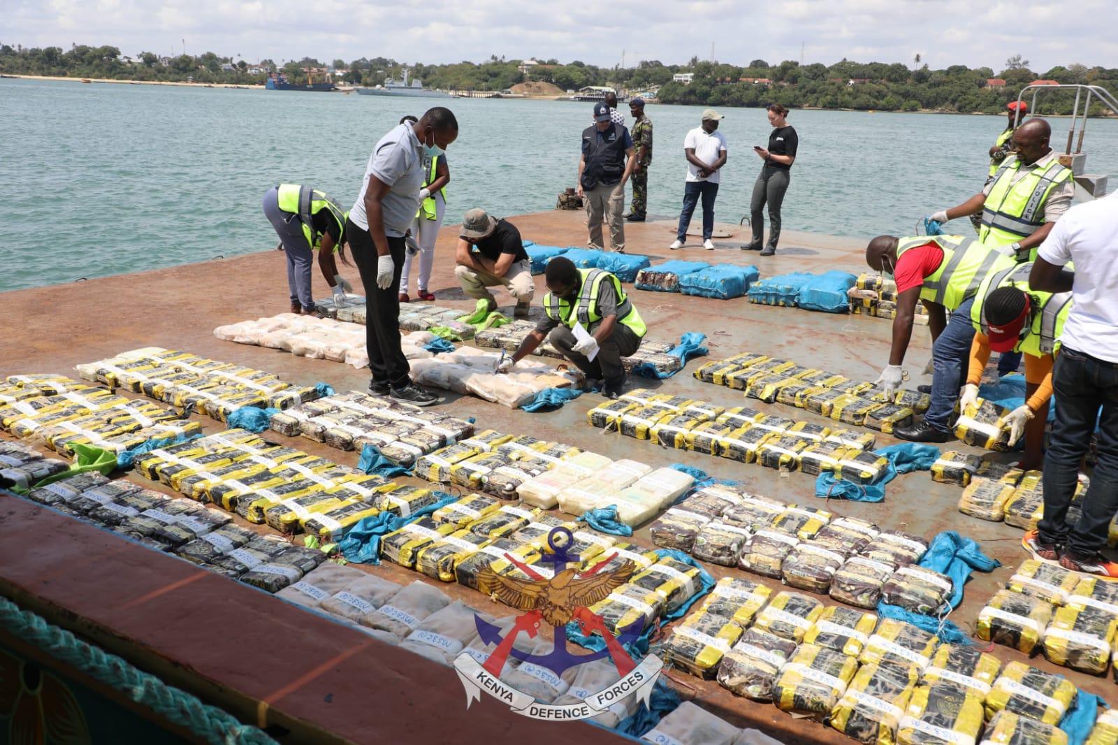 The Kenya Navy intercepted a non registered dhow codenamed ‘IGOR’ and seized 1024 kilograms of methamphetamine with a street value of approximately 8.2 billion shillings, 630 kilometres East of Mombasa Coast.