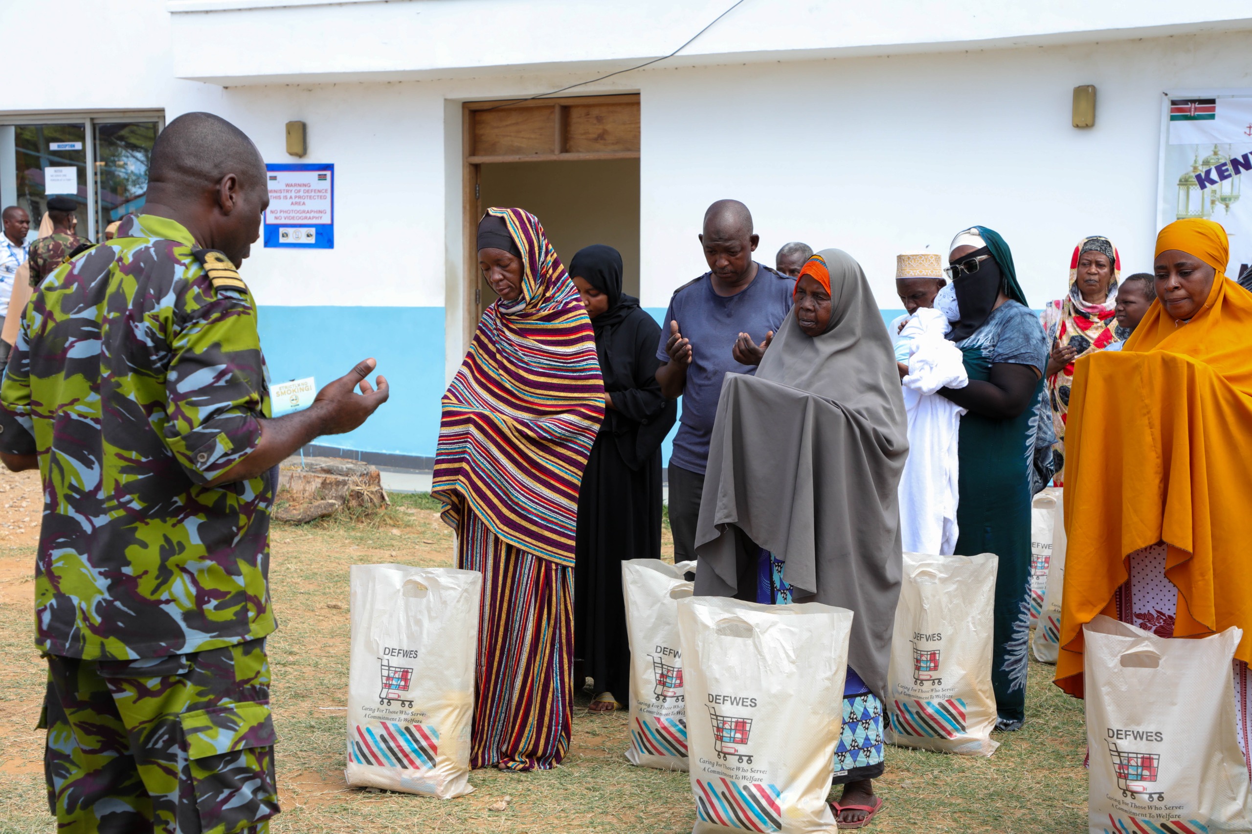 On behalf of Defence Headquarters Principal Imam Colonel (Imam) Abdulmalik Rubeya, Kenya Navy Service Imam, Lieutenant Colonel (Imam) Salim Mwarora, on 27 February 2026, in a gesture of goodwill during the holy month of Ramadan donated assorted food items to the Muslim community at Mtongwe, Mombasa.