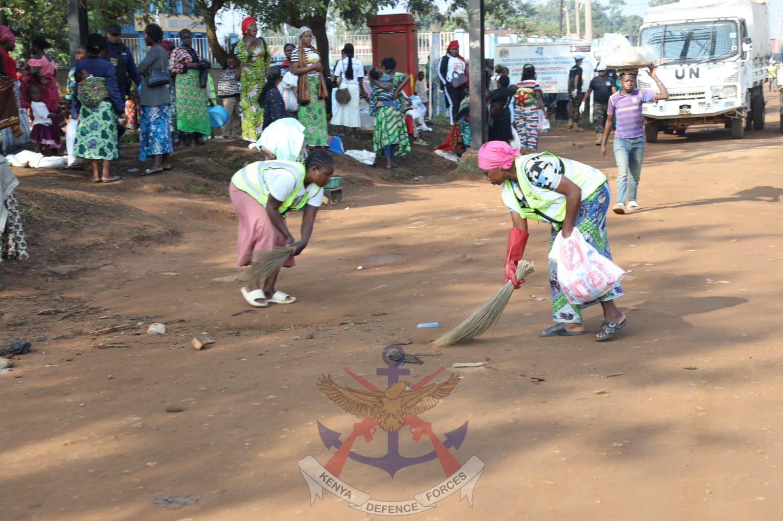 The Kenyan contingent worked alongside local volunteers to sweep streets, clear drainage channels, and collect solid waste in a demonstration of strong civil-military cooperation. The weekly event was graced by His Excellency the Mayor of Beni Territory, Colonel Nyofondo Jakobe, who commended the participation of the Kenyan troops and highlighted MONUSCO’s dual contribution to the region.