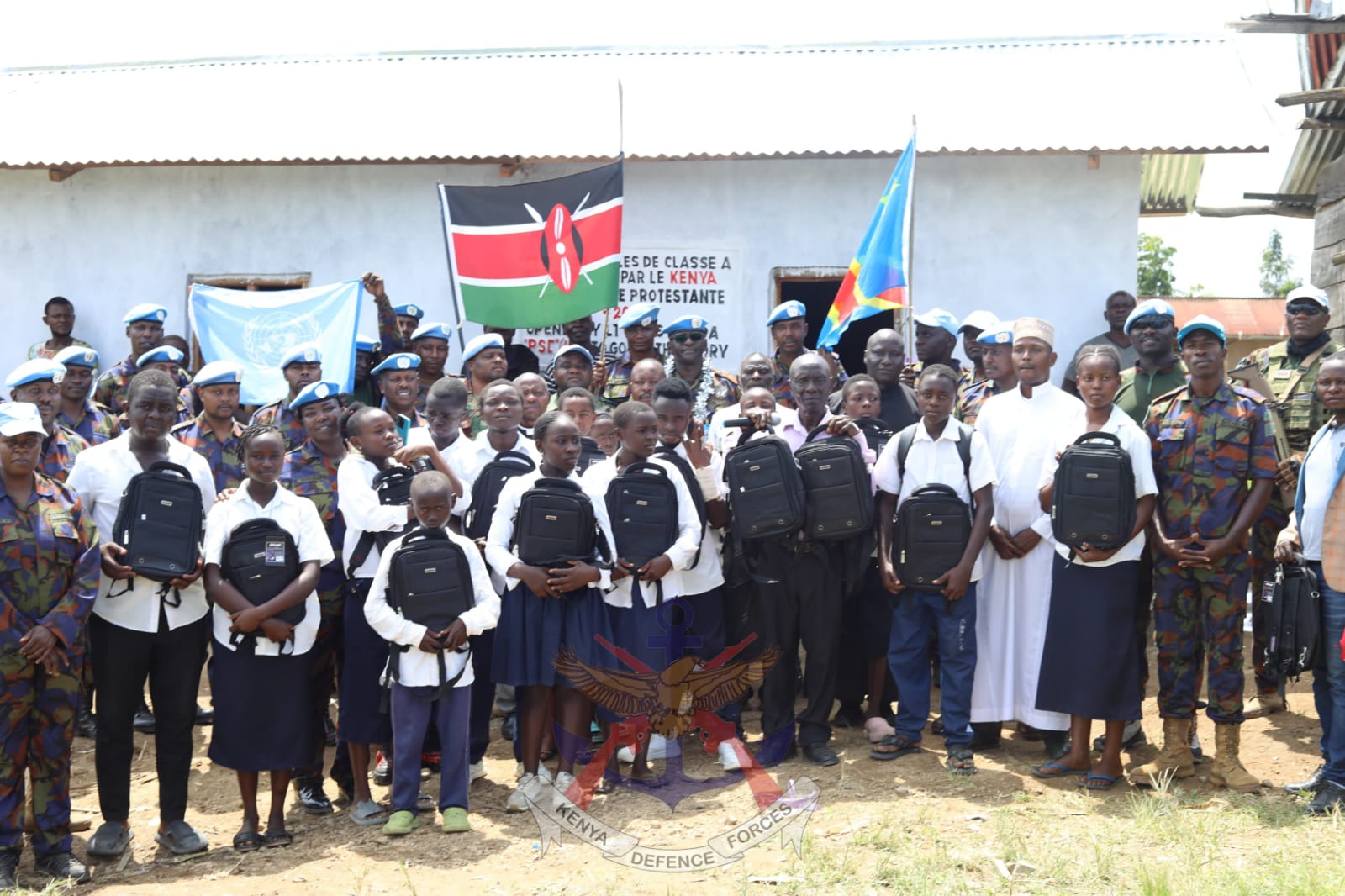 Troops from the fourth contingent of the Kenya Quick Reaction Force (KENQRF 4), serving under the United Nations Organization Stabilization Mission in the Democratic Republic of Congo (MONUSCO), have today inaugurated two newly constructed classrooms at the Institut Eringeti à Mavivi in Beni Territory, North Kivu Province.