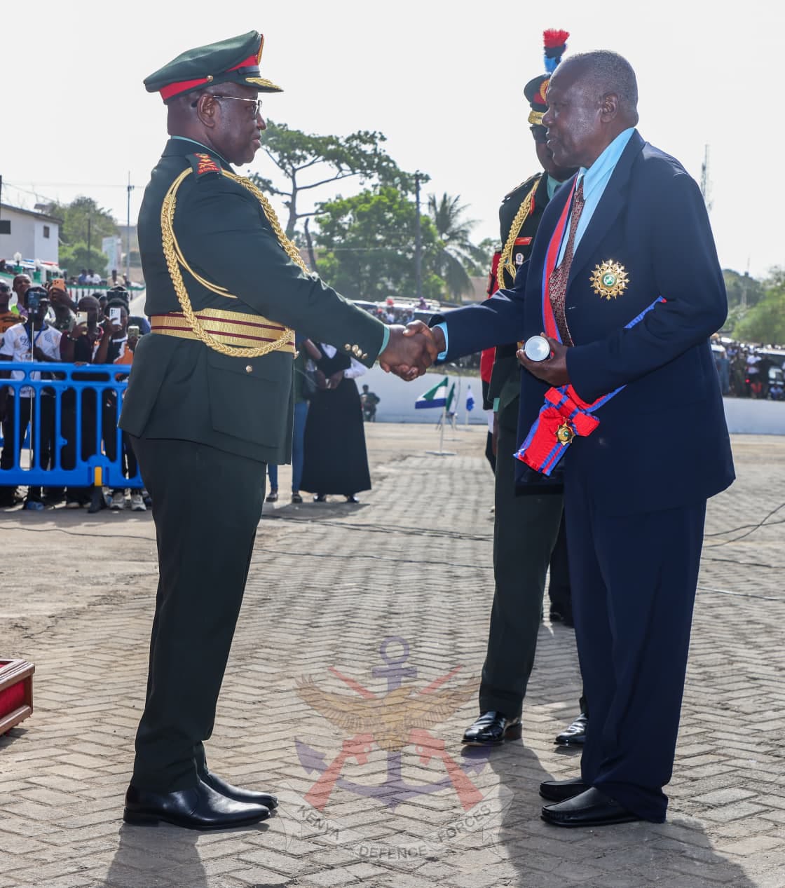 Lt Gen (Rtd) Opande was decorated in recognition of his sacrifice, contribution, and outstanding service—together with other Kenyan soldiers—towards the restoration of peace and stability in the Republic of Sierra Leone. His successful leadership in the disarmament of rebel forces played a pivotal role in bringing the civil war to an end and restoring lasting peace in the country.