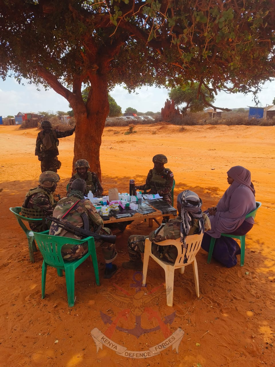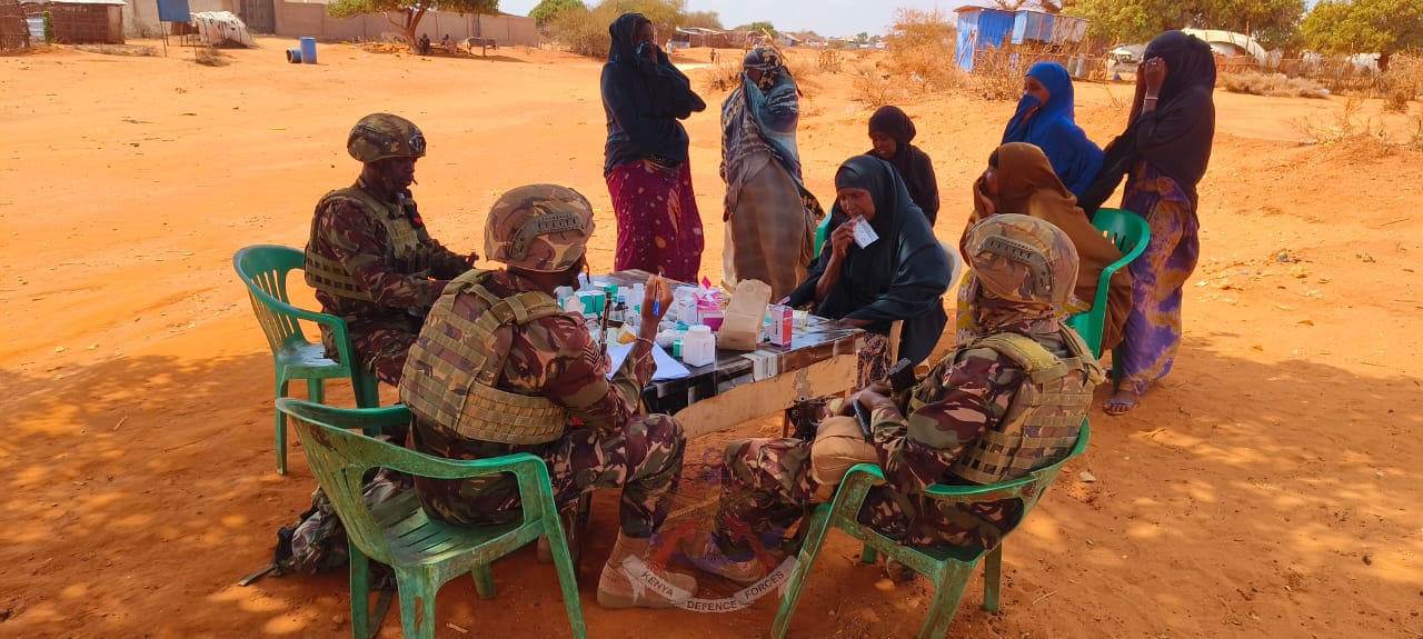 Kenya Defence Forces (KDF) troops serving under the African Union Support and Stabilization Mission in Somalia (AUSSOM) and deployed at Kismayo New Aairport Main Operating Base conducted a medical outreach at Sharif Adha village located within the outskirts of Kismayo on 18 December 2025.