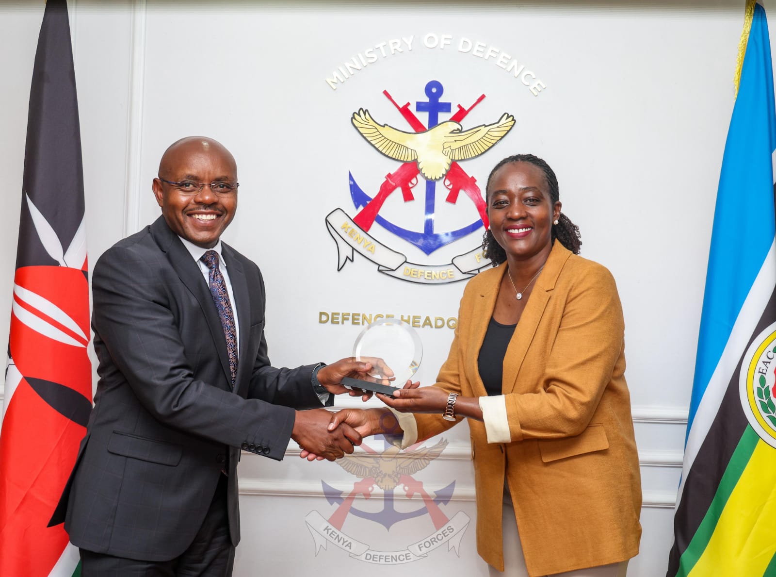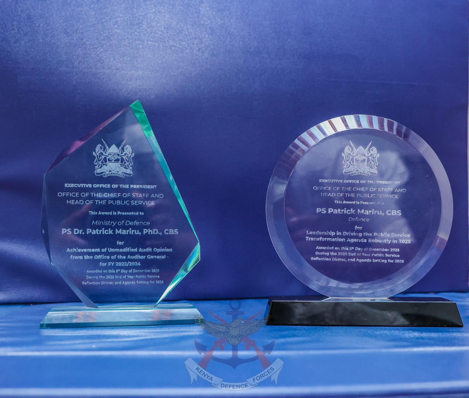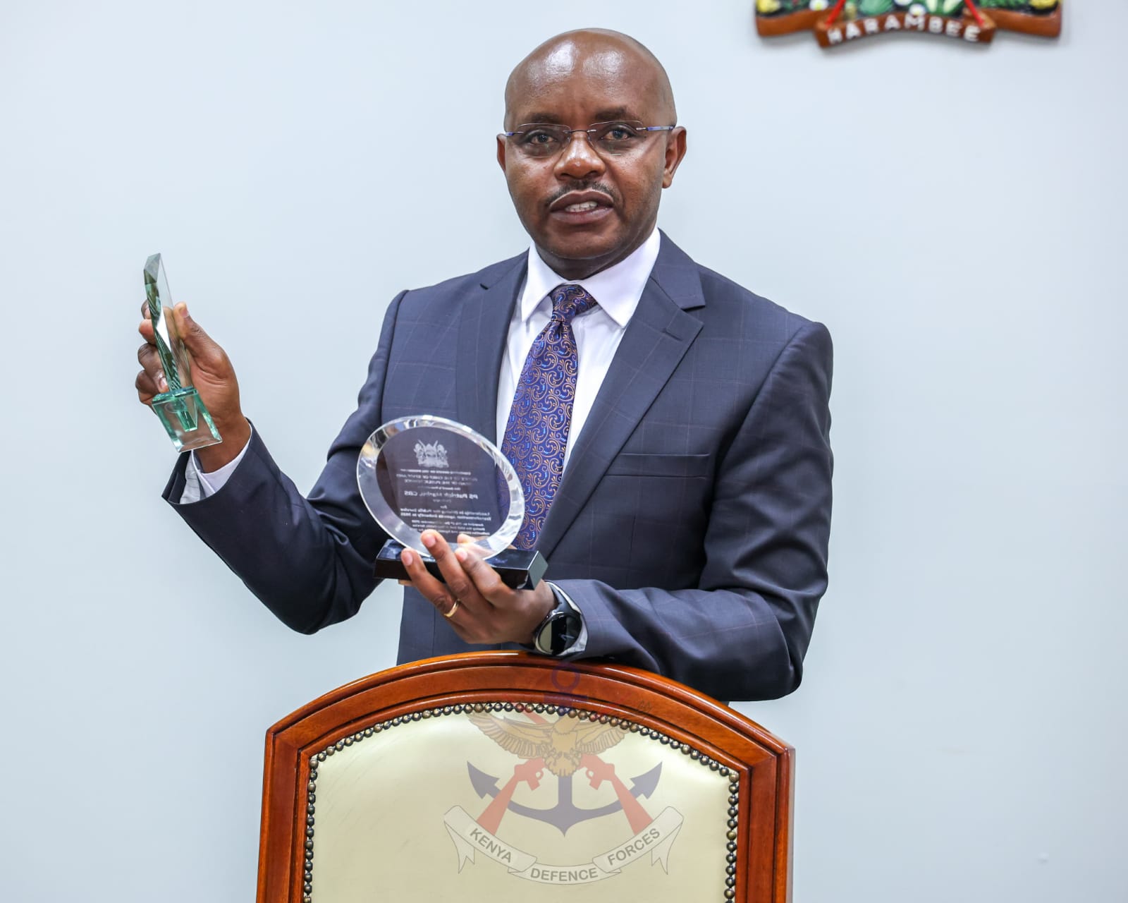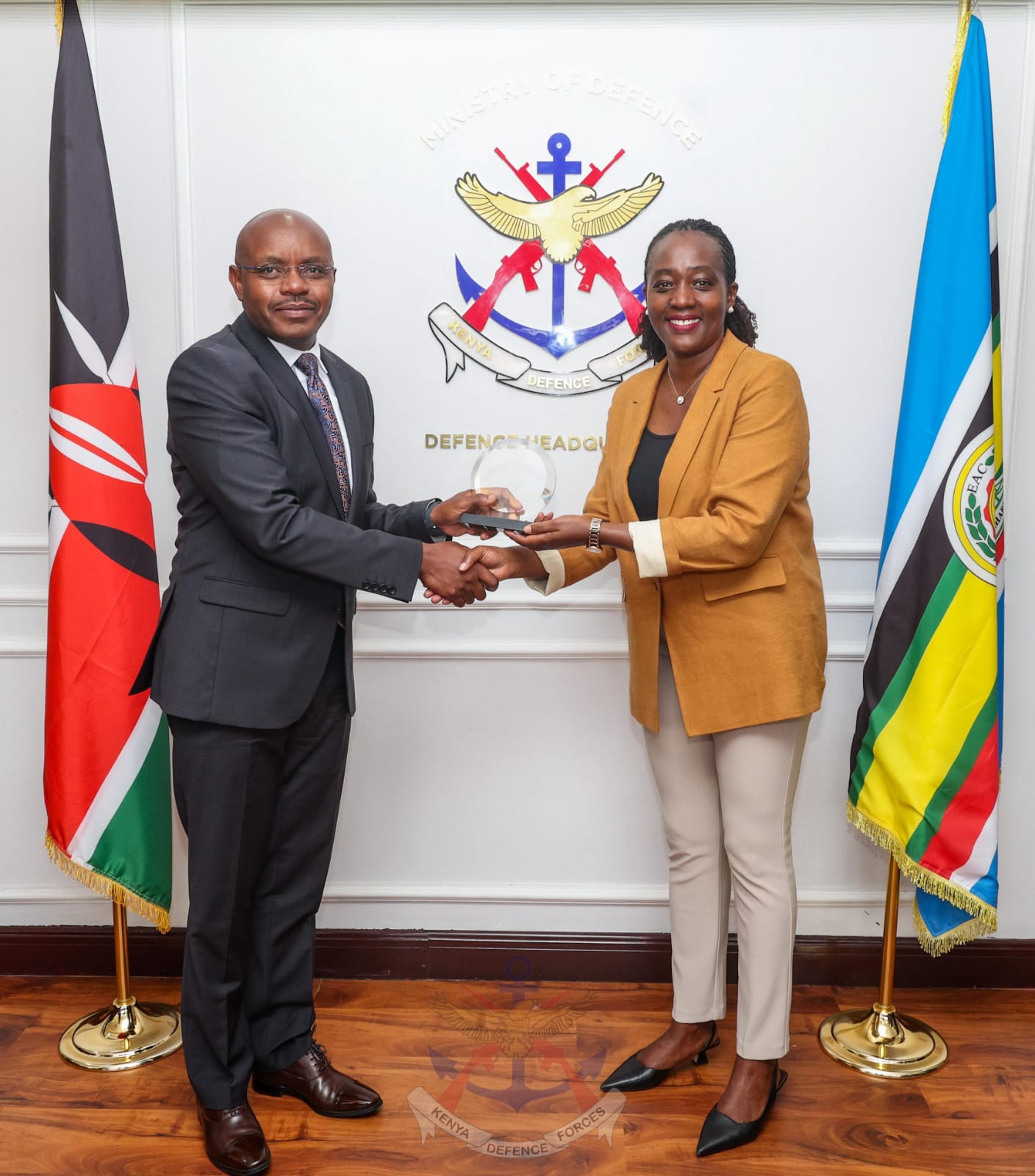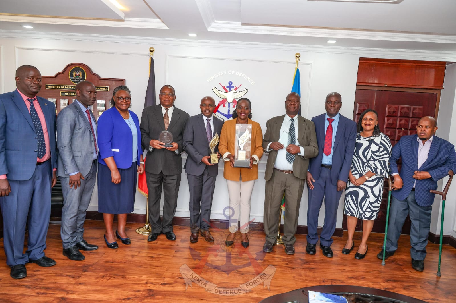 The awards were officially presented to Defence Cabinet Secretary, Hon. Soipan Tuya, during a ceremony held today at Defence Headquarters (DHQ). The presentation was made by the Defence Principal Secretary, Dr. Patrick Mariru, in the presence of senior Ministry officials and Heads of Departments.