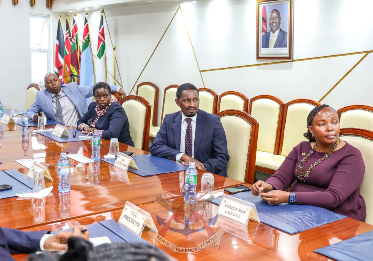 Defence Cabinet Secretary (CS) Hon. Soipan Tuya, alongside Defence Principal Secretary (PS) Dr. Patrick Mariru, held a consultative engagement with Laikipia County leadership at Defence Headquarters (DHQ). The meeting brought together area Members of Parliament Hon. Mwangi Kiunjuri (Laikipia East), Hon. Sarah Korere (Laikipia North), Hon. Wachira Karani (Laikipia West), and Hon. Jane Kagiri (Laikipia Woman Representative) to deliberate on the proposed construction of Nanyuki Stadium.
