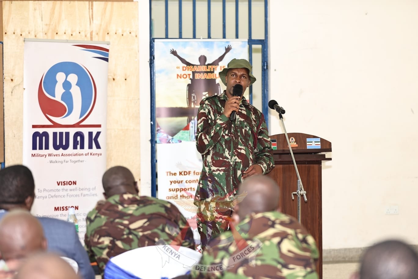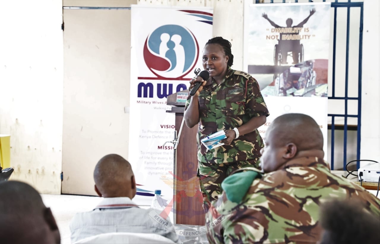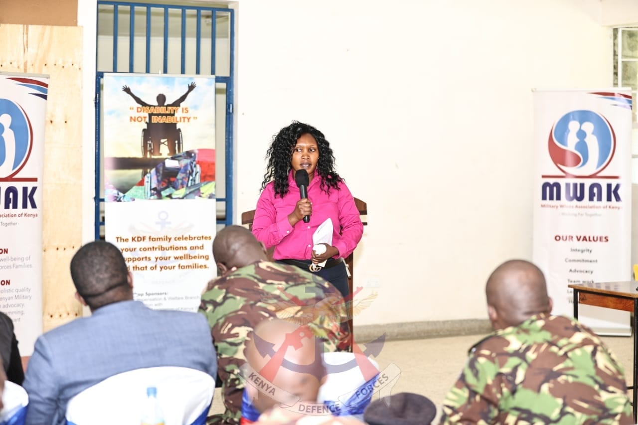 Kenya (MWAK) led by the Chairperson, Mrs Tabitha Kibochi on 23rd September 2022, conducted a mentorship program for the Kenya Defence Forces (KDF) Service Personnel with disabilities at the Moi Forces Academy (MFA) Lanet in Nakuru County.