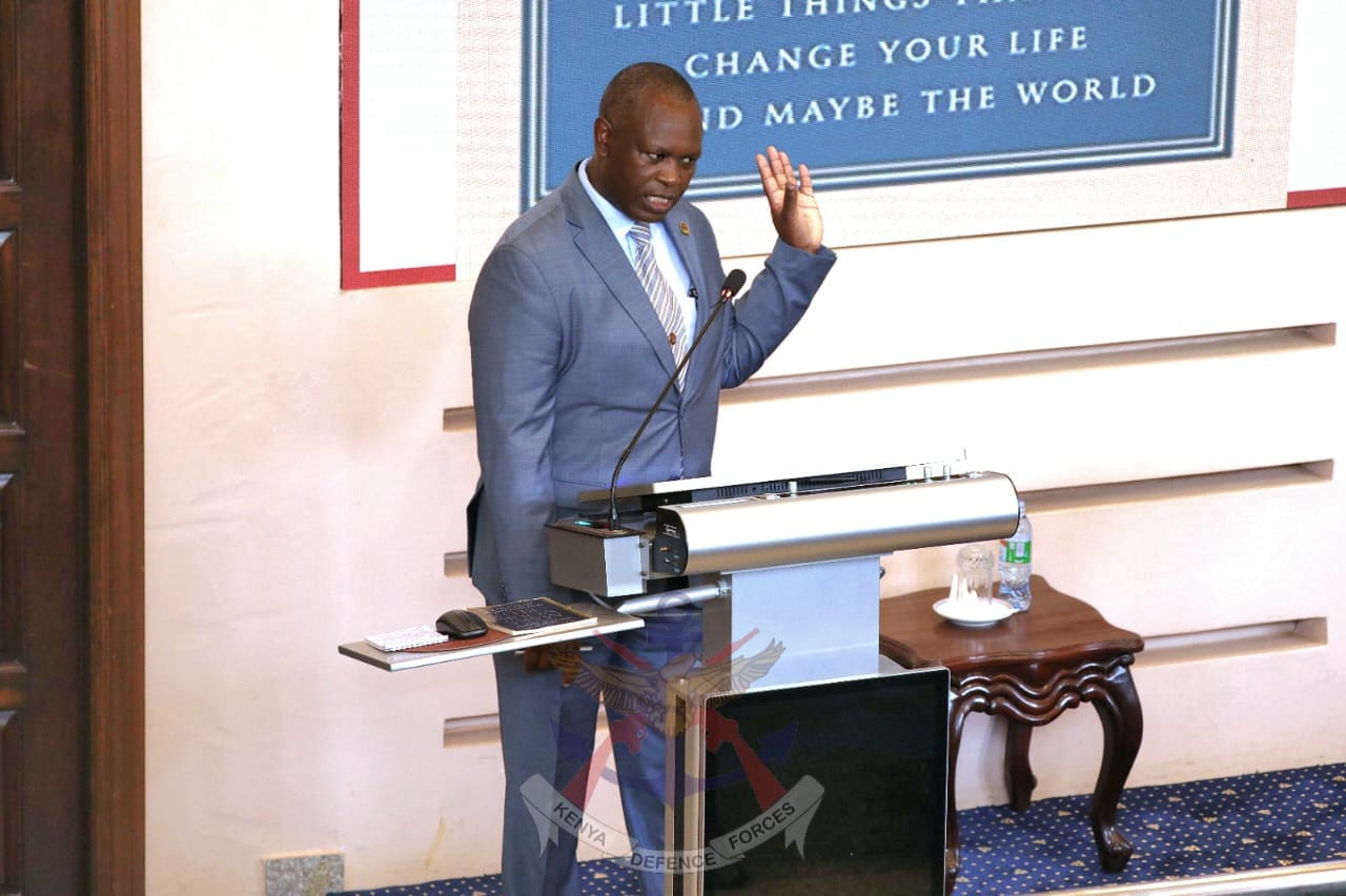 The Vice Chancellor of the National Defence University–Kenya (NDU-K), Lt Gen David Tarus, delivered a Lecture of Opportunity on Strategic Leadership to Course 28 (2025/26) participants at the National Defence College on 13 January 2025.