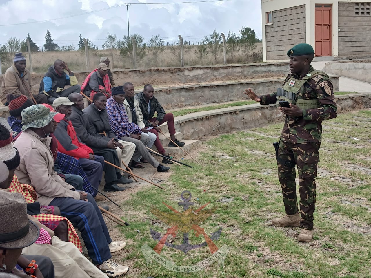 Kenya Defence Forces (KDF) personnel deployed in the Learoni area under Operation Maliza Uhalifu (OMU), as part of a multi-agency security team, recently conducted a Civil–Military Cooperation (CIMIC) and Key Leadership Engagement (KLE) activity at Loibor Ngare Centre.