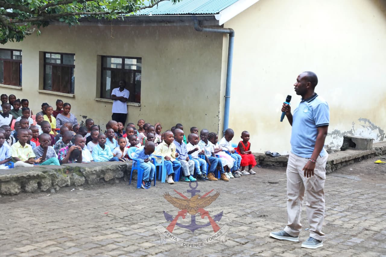 While addressing the children, the Officer Commanding Major Stephen Otieno encouraged them to remain disciplined and focused on their education. He emphasized the importance of leading a morally upright life, noting that education and discipline are key pillars to becoming responsible and impactful members of the society.