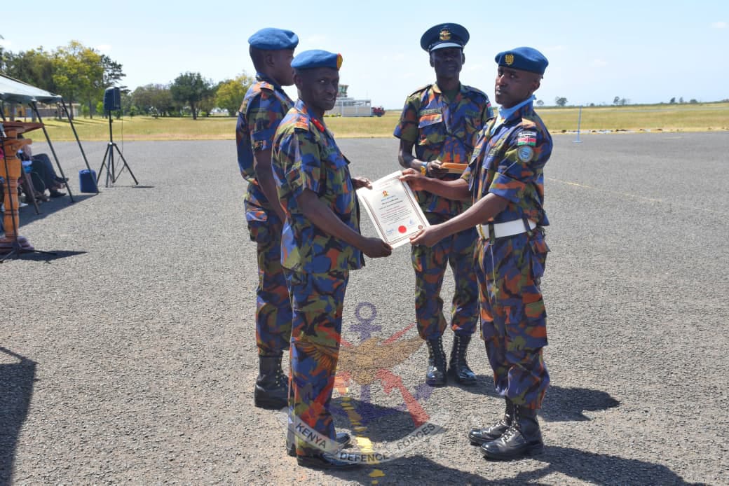 Also present were the Base Commander Laikipia Air Base Brigadier Mohamud Farah, Commandant Kenya Air Force Training Wing Colonel Charles Munyao, senior officers, officers and Service members.