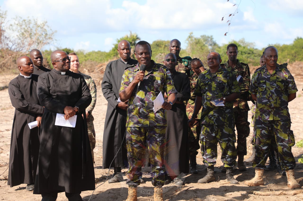 In his keynote address, Brigadier Lazarus Wafula, Commander of KNB Manda Bay, reminded personnel of the sacredness of spiritual life within the military. “This is sacred ground, a place where hearts have been lifted in praise during moments of victory, and where souls have found comfort and strength in times of trial,” he said. Brigadier Wafula emphasized that the new church would stand not only as a physical structure, but also as a sanctuary of shared hope and enduring faith.