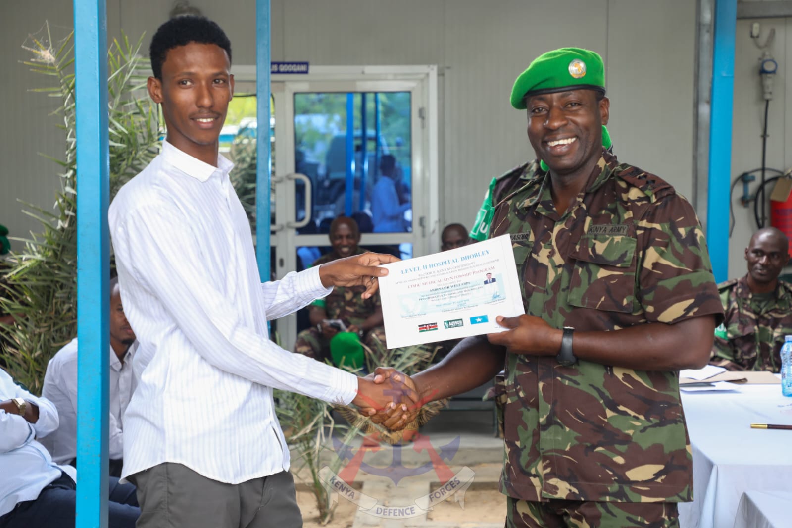 Speaking during the ceremony, KDF commanders at the Level II Hospital commended the graduates, noting that the skills acquired will have a lasting impact on community health. They emphasized that the graduates represent a vital step toward a stronger and more resilient healthcare system and expressed pride in equipping the trainees with skills that will directly improve lives by strengthening the capacity of Dhobley General Hospital and the Somalia Security Forces.