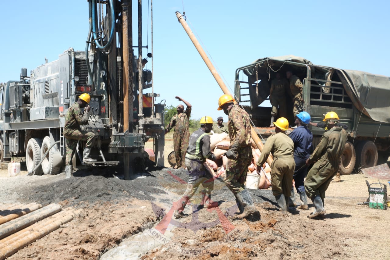 The Kenya Defence Forces Engineers Brigade under a multiagency operation are finalizing two boreholes at Kirimon and Dam-Mawe in Laikipia County to alleviate water shortage, a cause for perennial conflict among pastoralist communities in the region.