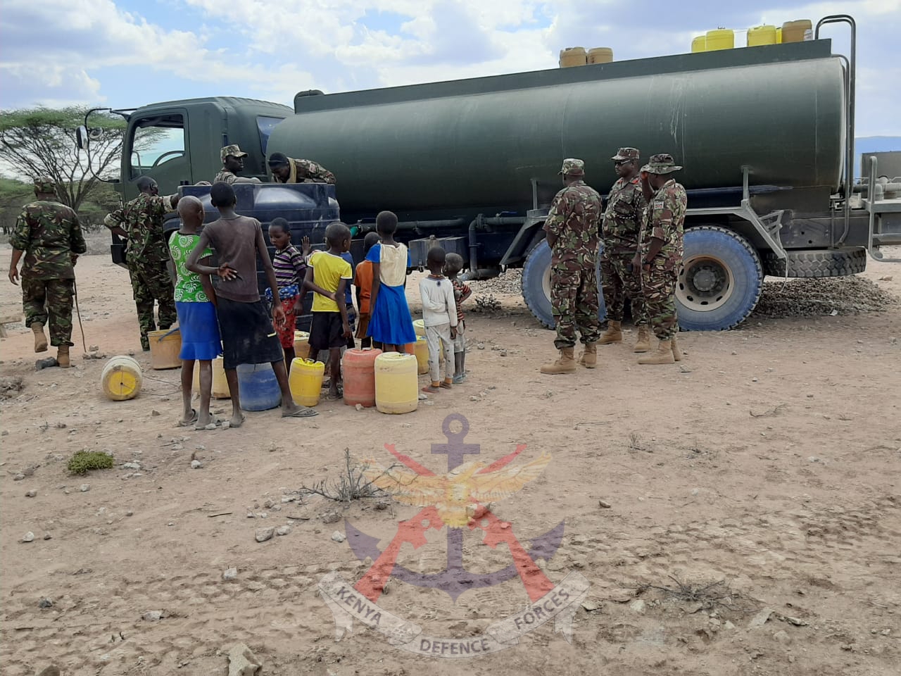 Elsewhere, KDF troops training in areas of Samburu and Isiolo counties on 8th October 2021 under the command of Deputy Brigade commander Col JK Maiyo supplied water to residents living in drought striken area of Lerata villages along Isiolo-Wamba road.