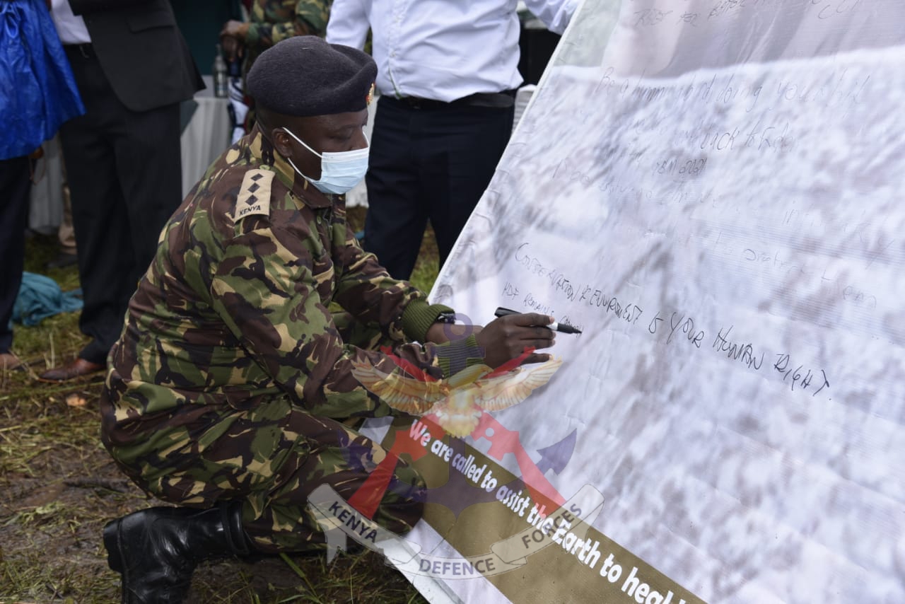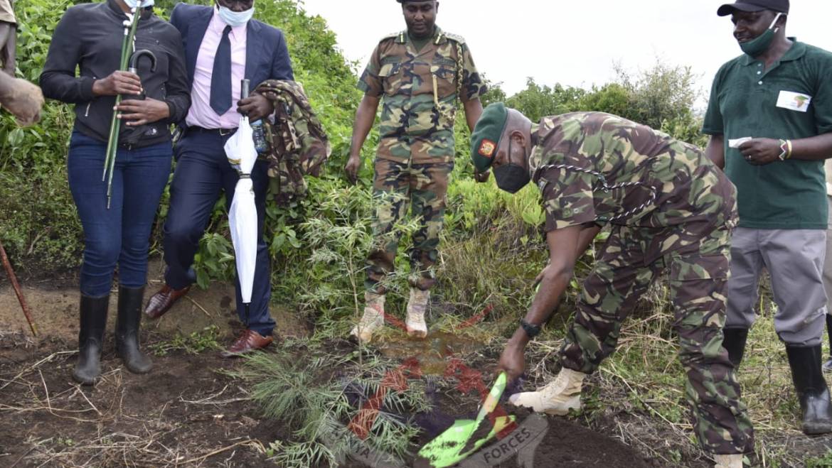 Brigadier John Nkoimo, Deputy Commandant Kenya Military Academy, marked the event by planting twin seedlings of a Podo Spp and Casuarina Spp to signify the unique responsibility of KDF to ensure comprehensive human security. He said that environmental issues are anchored in the KDF’s Environment soldier programme established in 2003.