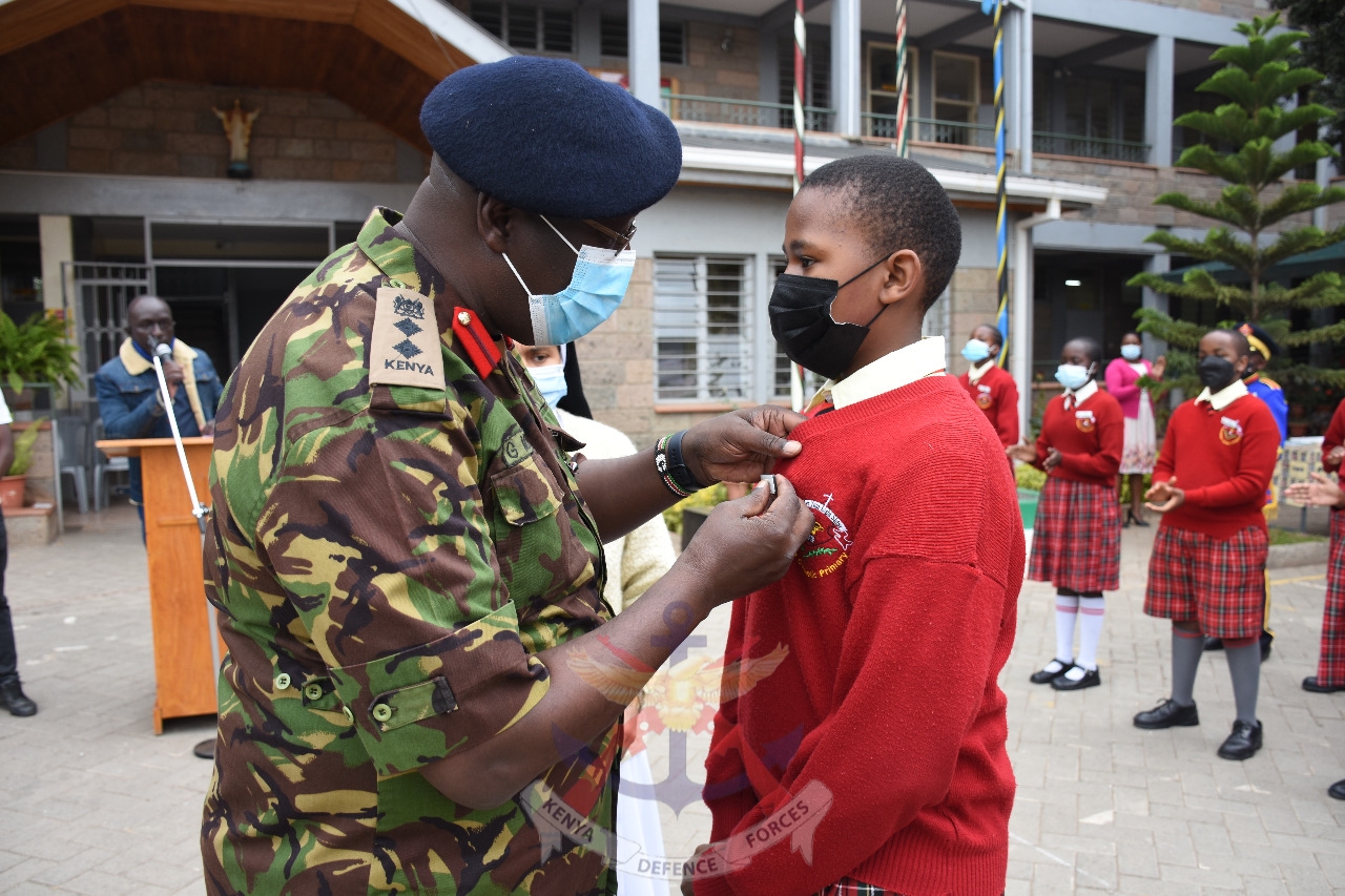 - Col (Fr) Maingi honoured the invite by the school’s leadership, led by the headteacher Sister Maria Wilmer, to be the Chief Guest during a ceremony for the inauguration of new prefects.
